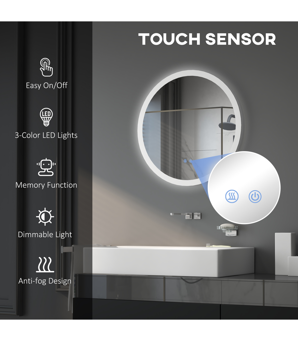 kleankin Illuminated Bathroom Mirror with LED Lights, 3 Colours, Defogging Film