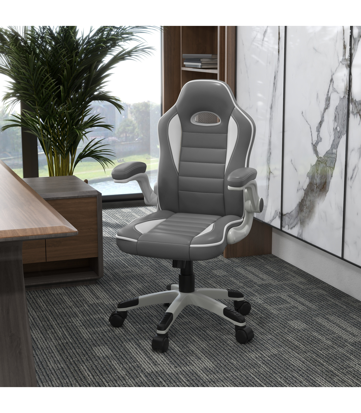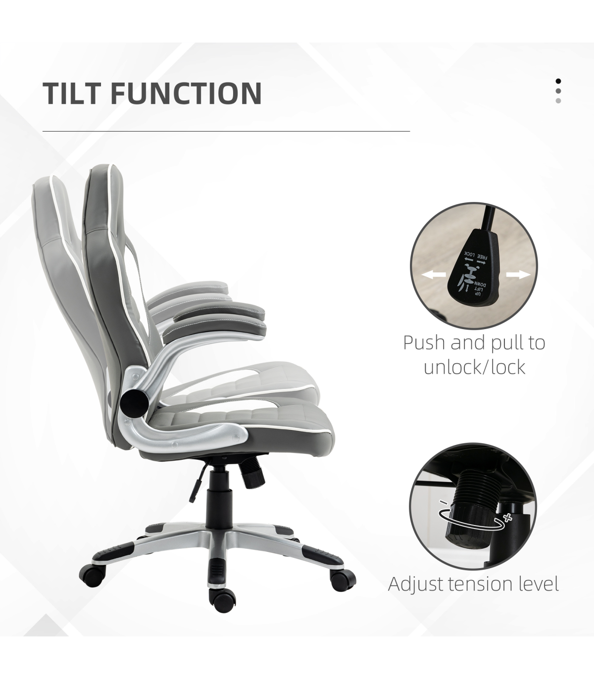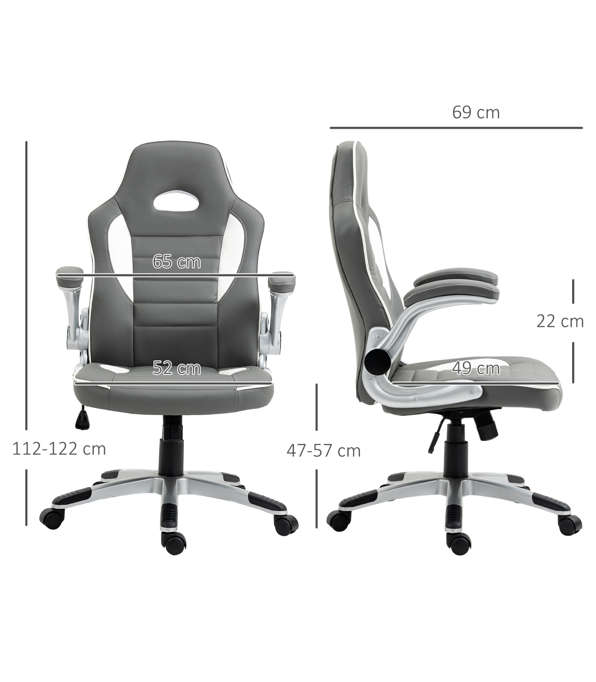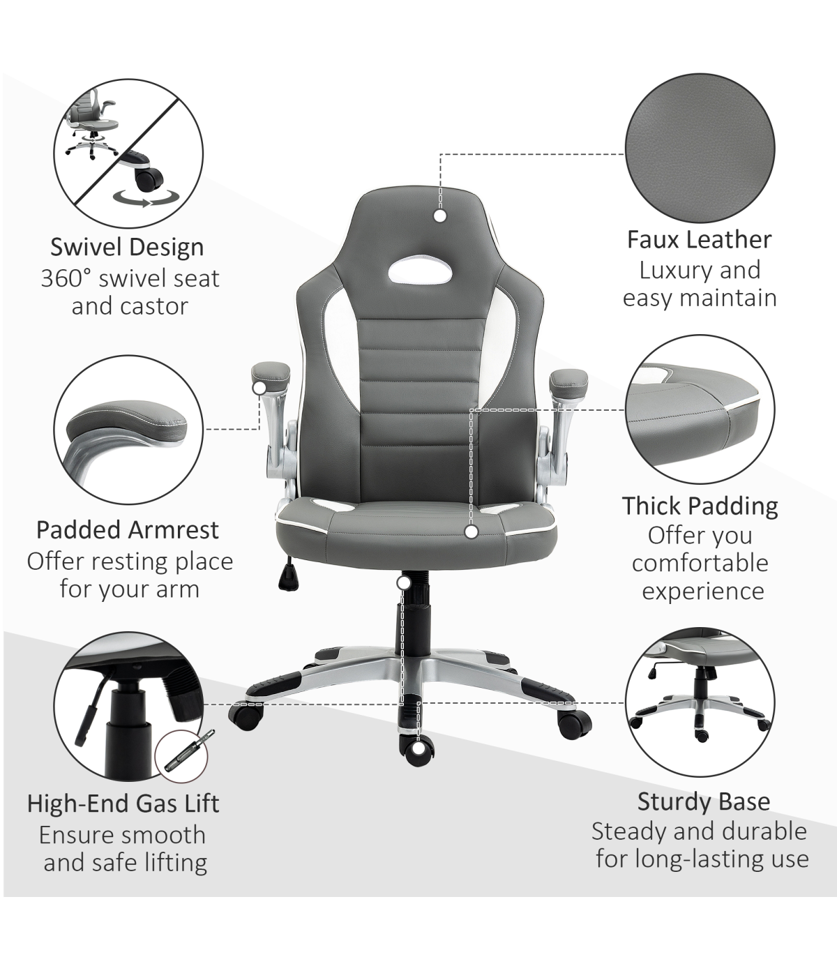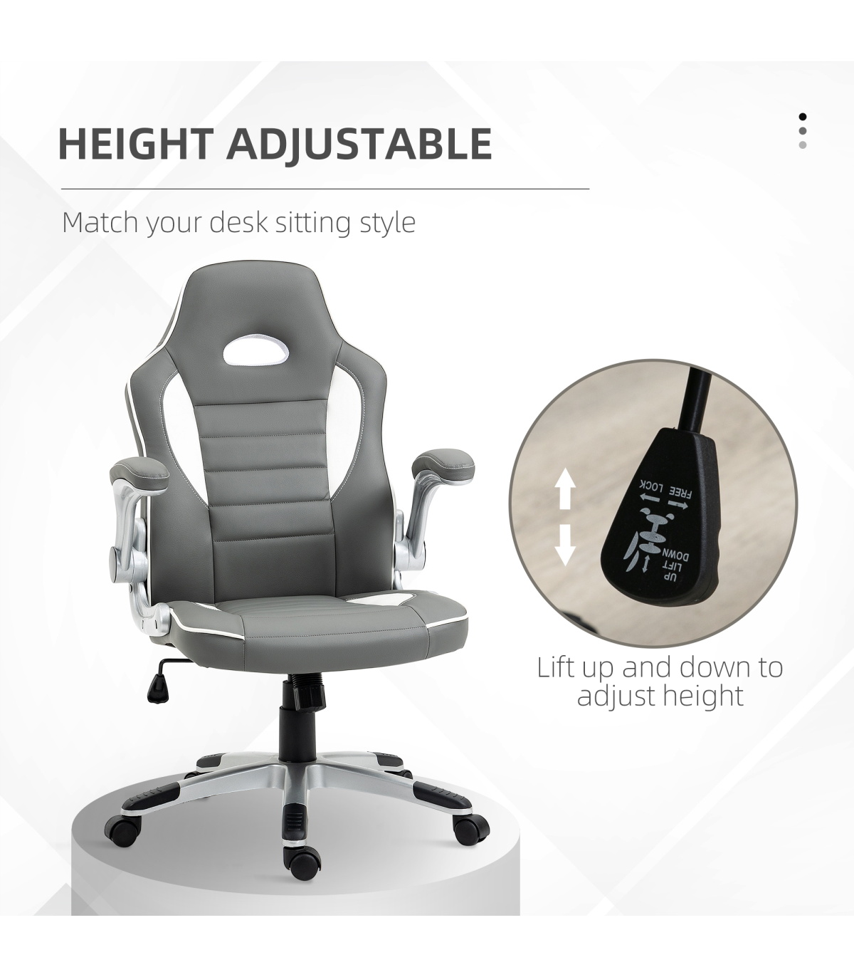 Racing Gaming Chair Height Adjustable Swivel Chair with Flip Up Armrests, Grey