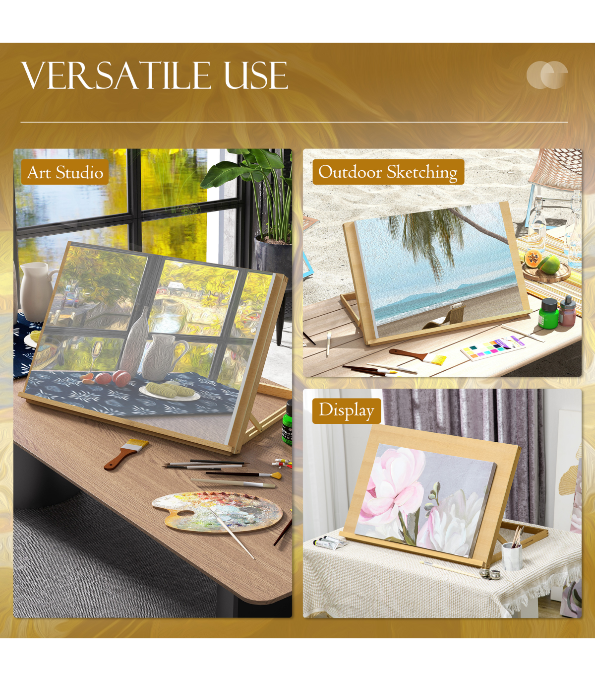 - A versatile choice for all ages and skill levels, supporting drawing boards and displaying art at a desk