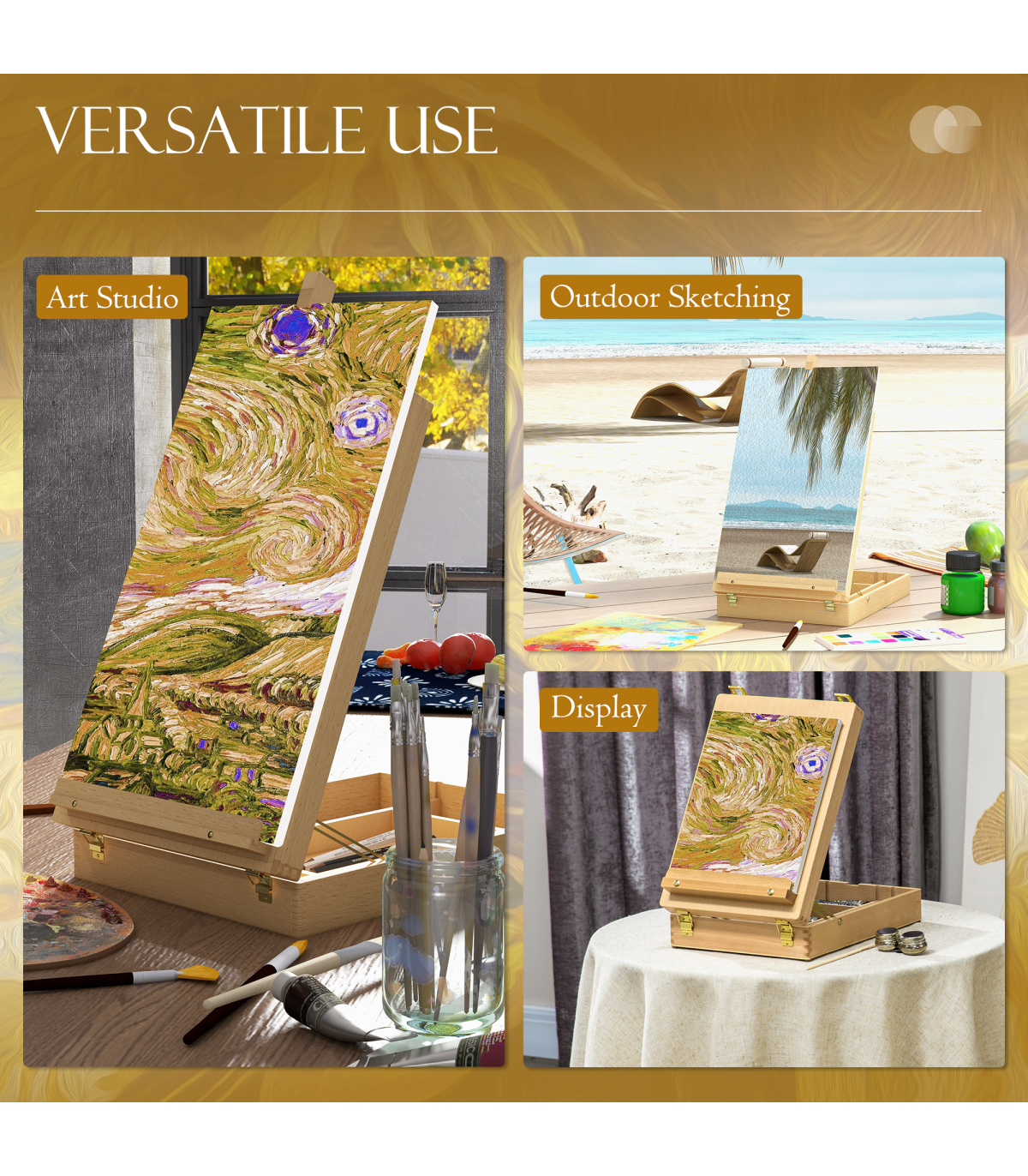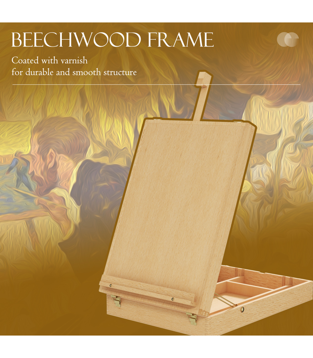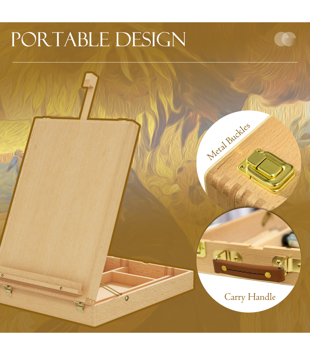 - Varnish coated beechwood frame is sturdy and durable - Fold into a compact box with faux leather carry handle for easy transport - Accommodate canvas of different sizes (max height: 61cm) - Adjustable angle to meet different use - With locking clasps to holds all your art supplies at the ready - A versatile choice for all ages and skill levels, supporting drawing boards and displaying art at a desk - PP feet underneath to prevent your table from scratching - No assembly required