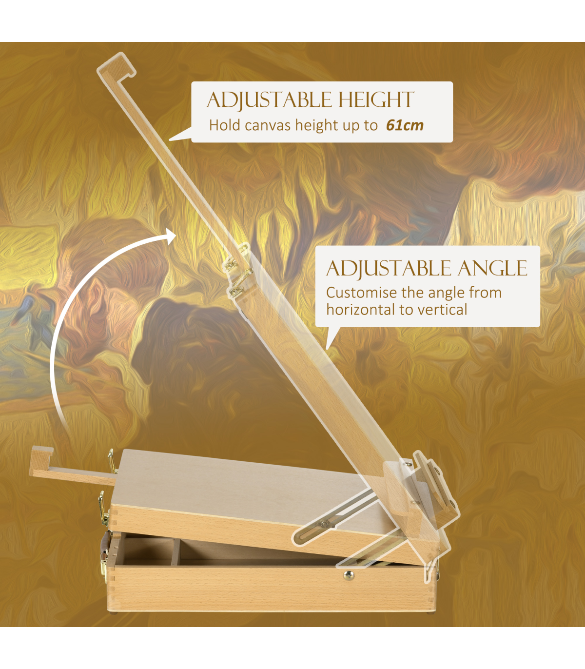 Vinsetto Wooden Table Easel Box Hold Canvas up to 61cm Adjustable Sketch Board