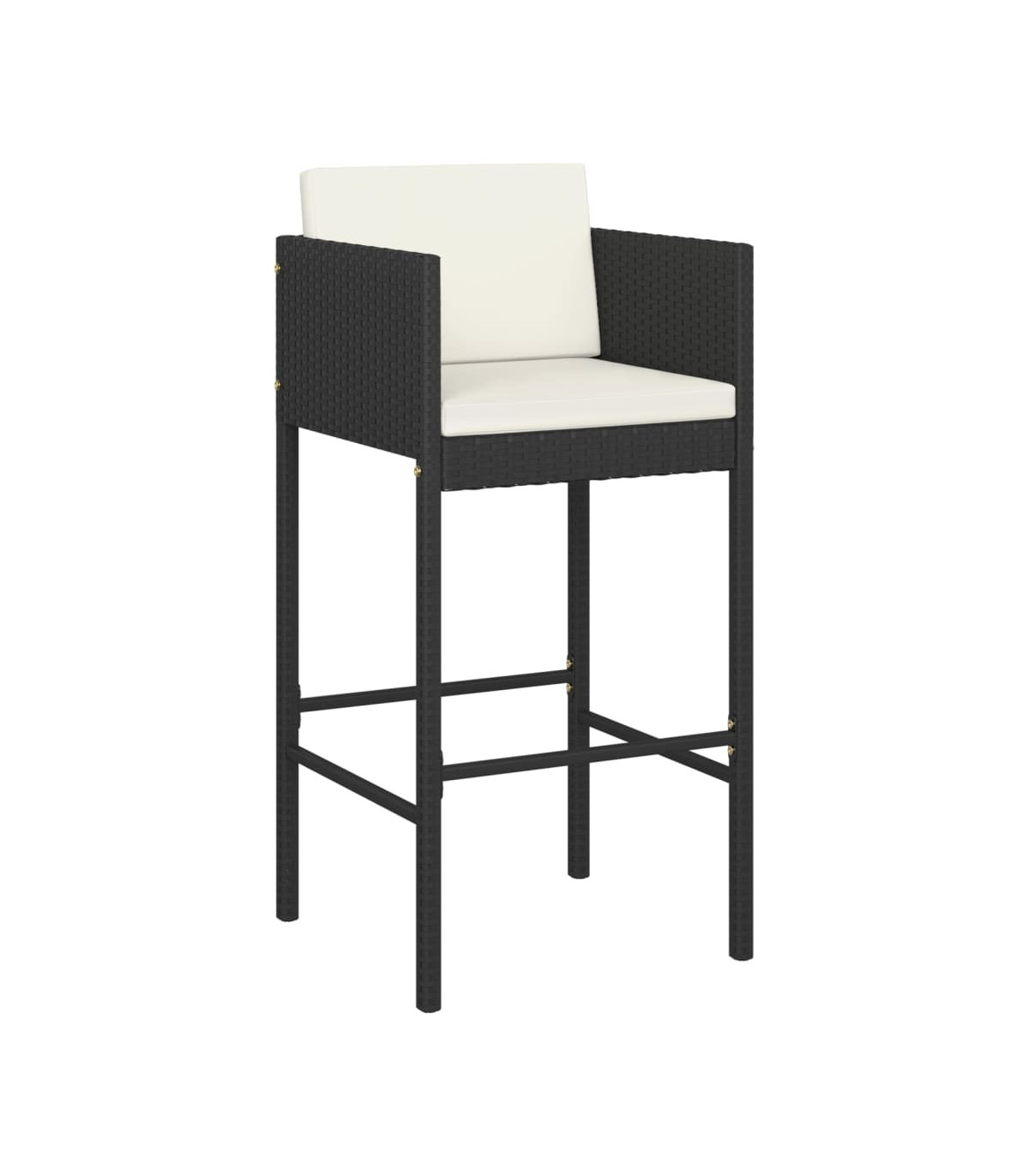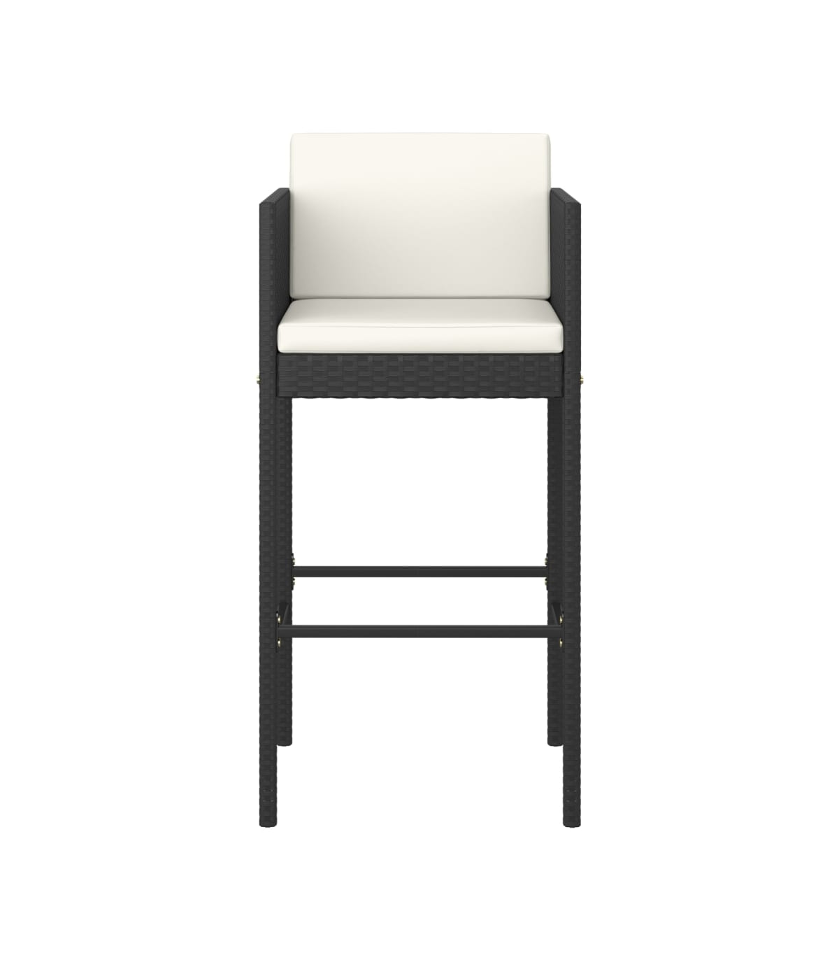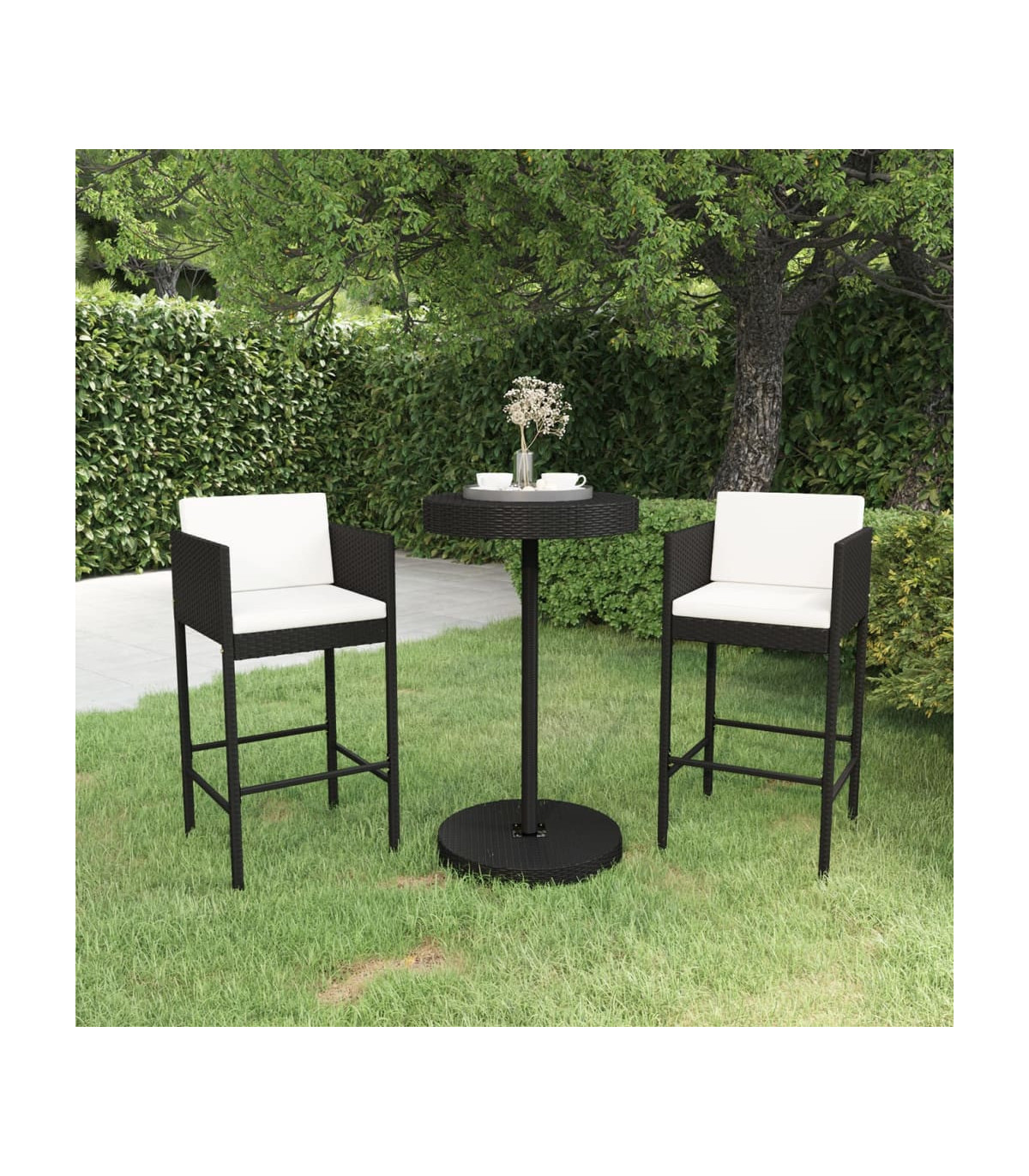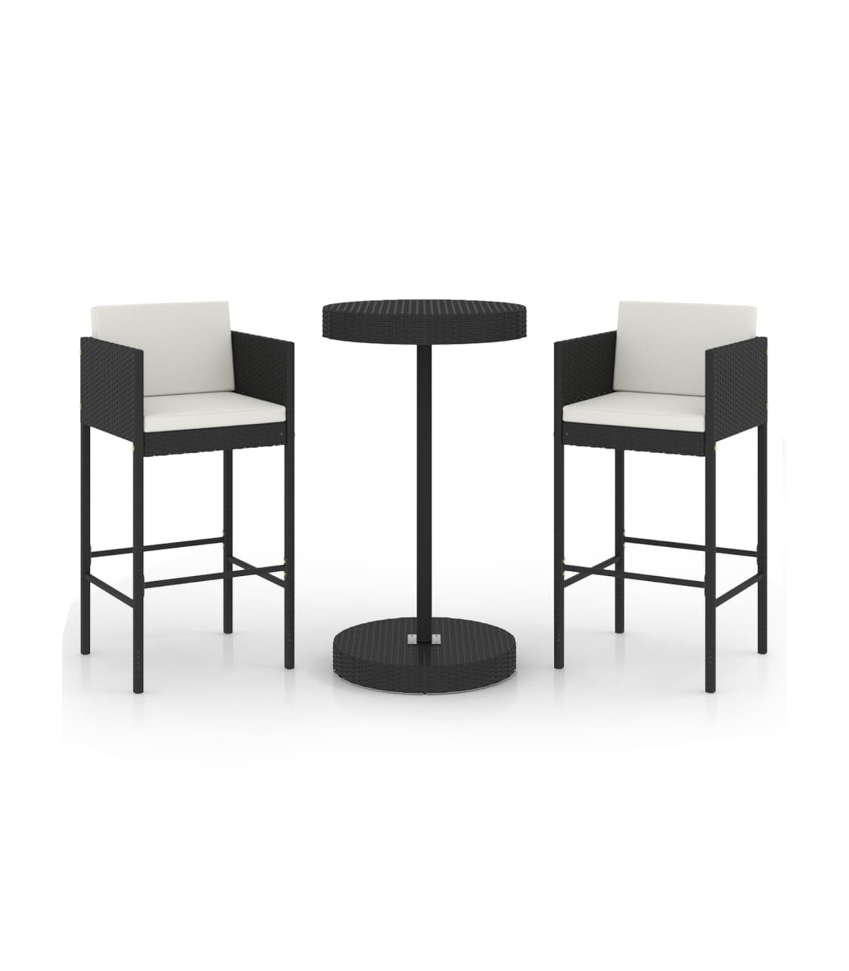 This stylish garden bar set provides you with a leisurely and comfortable time with your family and friends. Made of weather-resistant and waterproof PE rattan, this outdoor bar set is easy to clean, hard-wearing and suitable for daily use. The powder-coated steel frame makes the table and stools sturdy and durable. The round tabletop is ideal for placing drinks, food, or some decorative items. The footrest and cushions also add additional seating comfort for the stool. Thanks to the lightweight construction, all items are easy to move. Note: In order to extend the life of your outdoor furniture, we recommend you to clean it regularly and do not leave it outdoors without protection unnecessarily.Clean: Use a mild soap solution.Storing: If possible, store in a cool, dry place indoors. If the product is stored outdoors, protect it with a waterproof cover. Wipe and dry the excess water or snow from flat surfaces after a rain or snowfall. Allow sufficient air circulation to avoid moisture-related damage.
