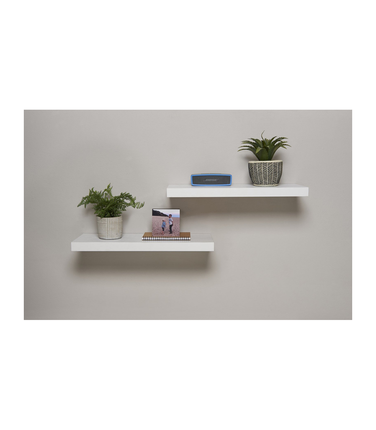 These Easy Fit Floating Shelves add a modern final addition to any room in the home or office keeping it neat and tidy.