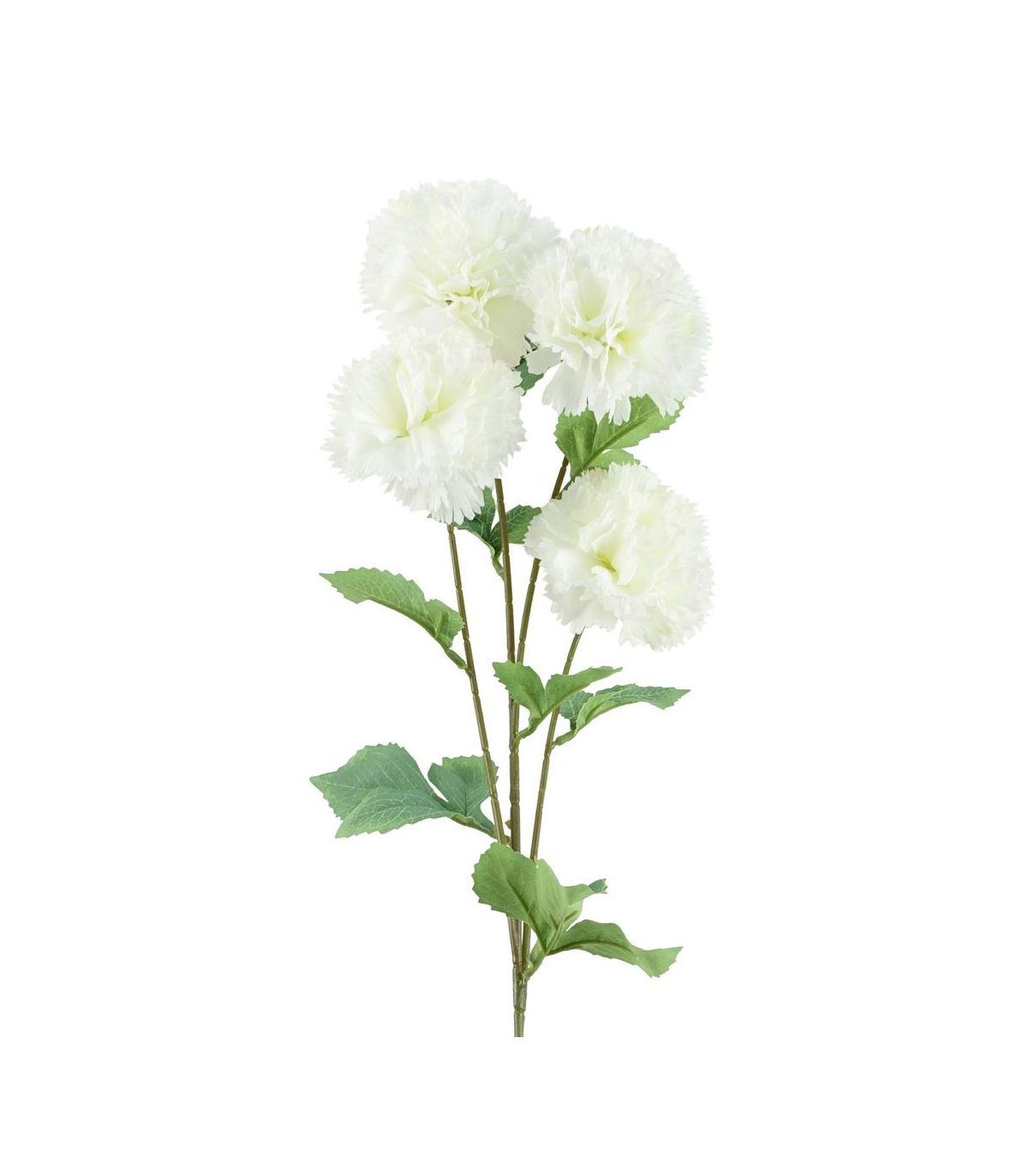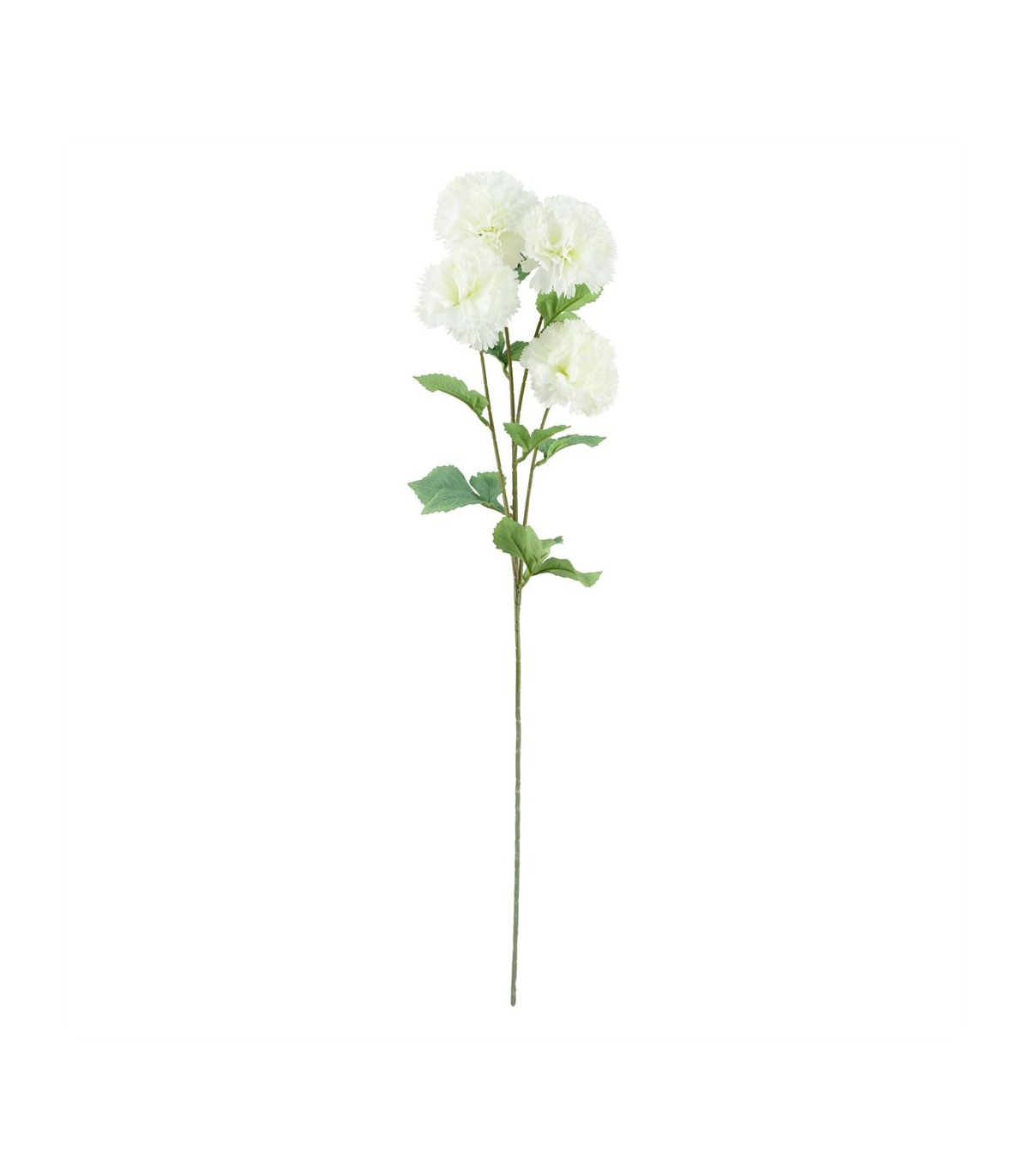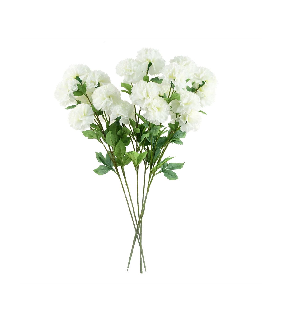 Pack of 6 x White artificial carnation stem. Can be used to make arrangements with our other artificial flowers or as decorations on their own. Each stem measures 70cm overall height x 15cm wide and has four flowers. Flowers are silk. These are easy to cut down shorter using a pair of wire cutters if required. Some of our photos show vases to give an idea of size and possibilities for arrangement but no vases or planters are included with these flowers.