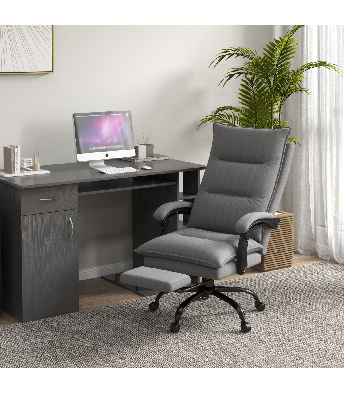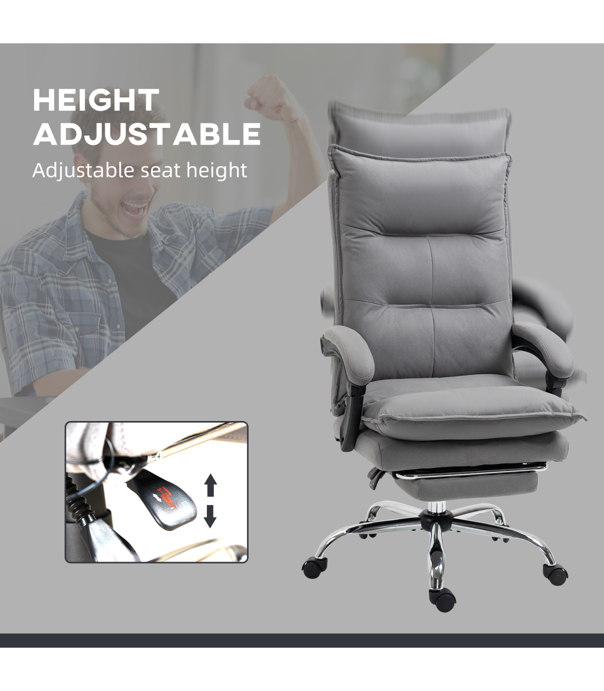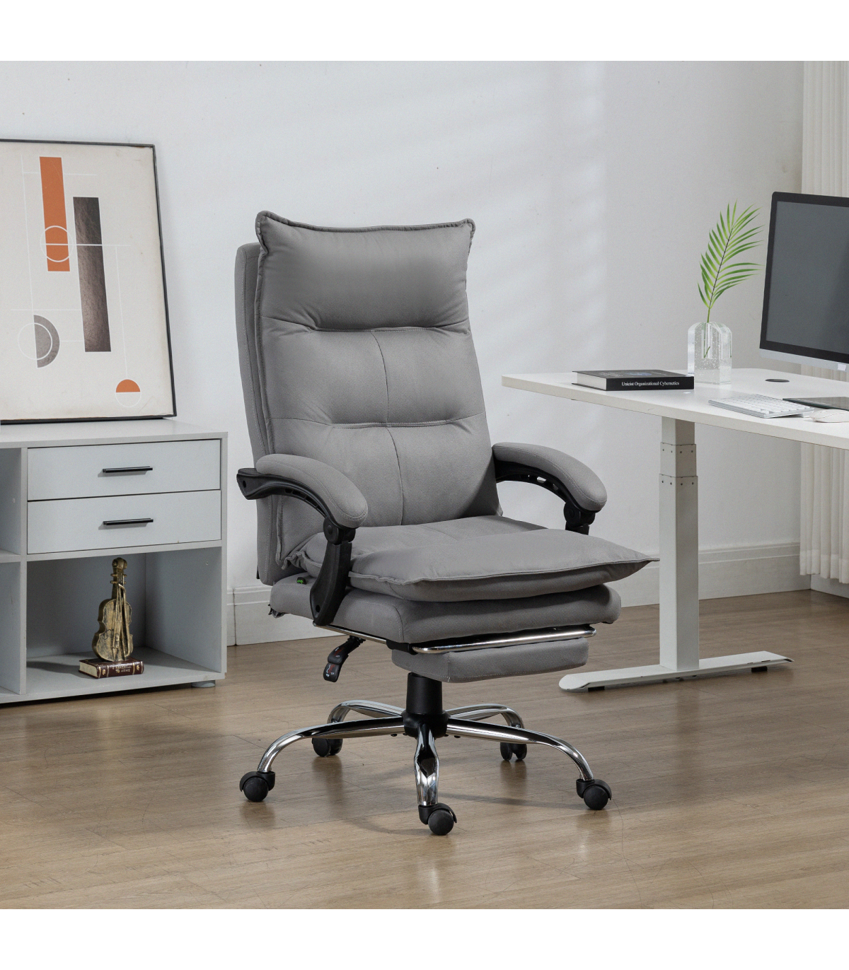 - "Vinsetto Microfibre Vibration Massage Office Chair with Heat, Footrest, Grey" - Description: - Home office chair features six points: five massage modes and one lumbar heat mode - 155° reclining back and manual footrest - Double padded PC chair is super comfortable, with soft microfibre upholstery - 114-121.5cm adjustable seat height: work at a level you want - Five wheels to move chair around easily when seated or empty - Maximum load 120kg, assembly required