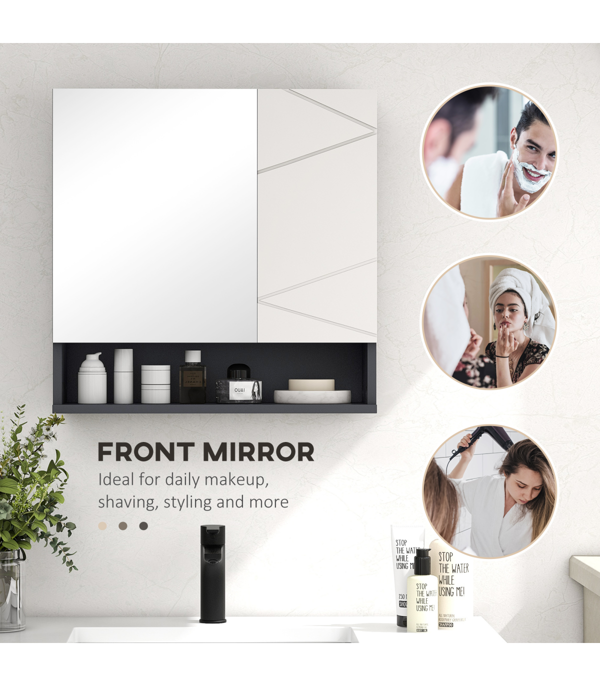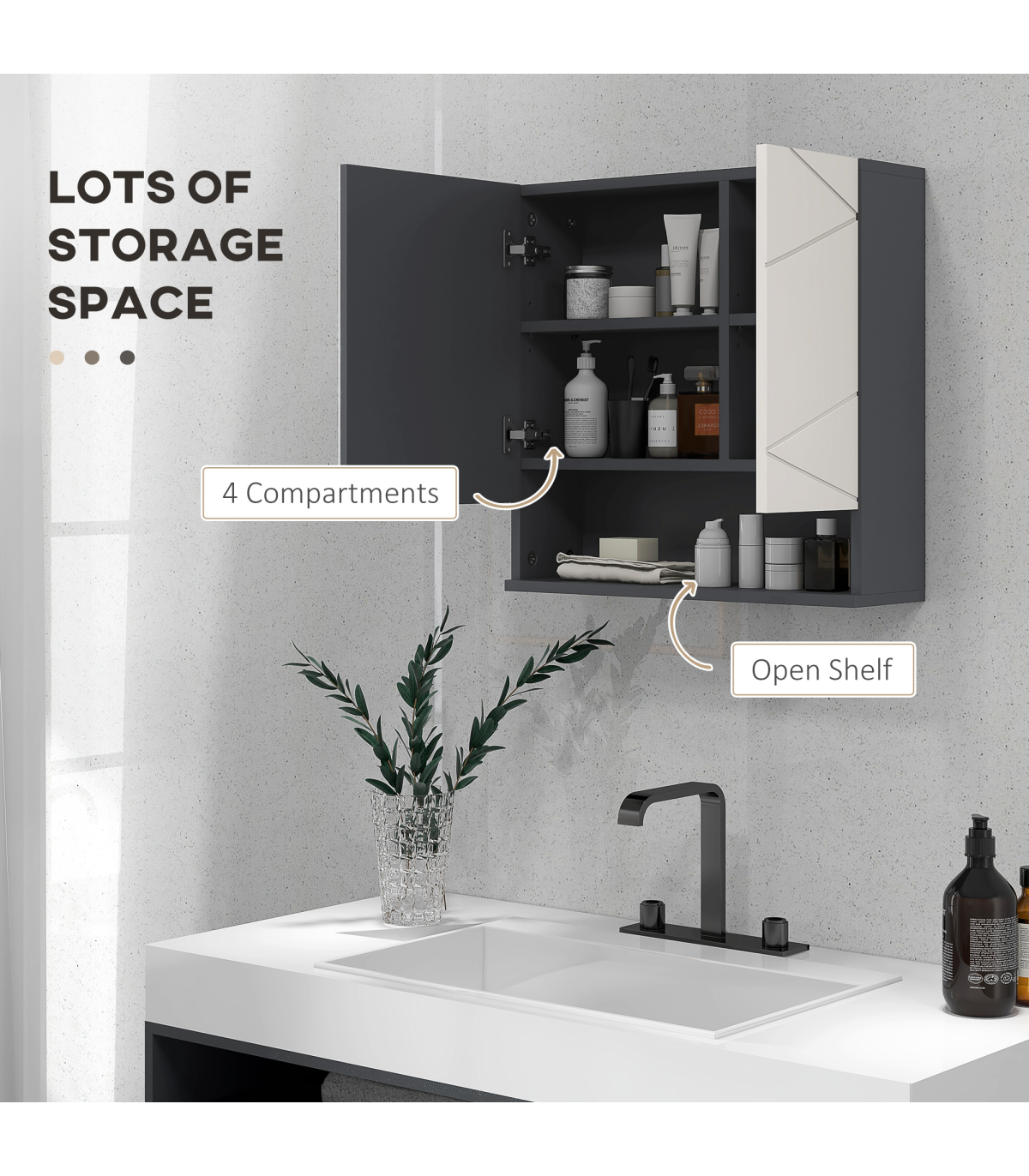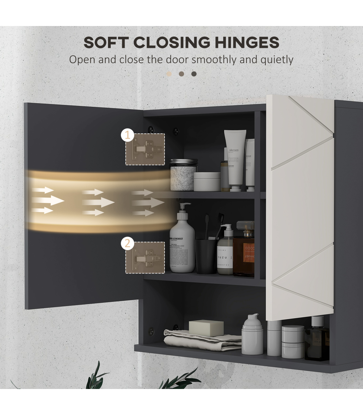? Bathroom storage cabinet has cushioned hinges for soft closing