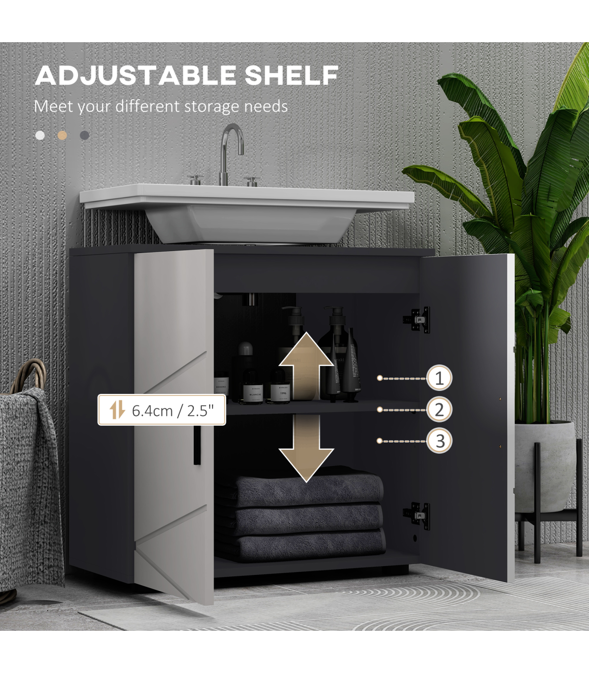 U-shape slot, fits with your sink pipes