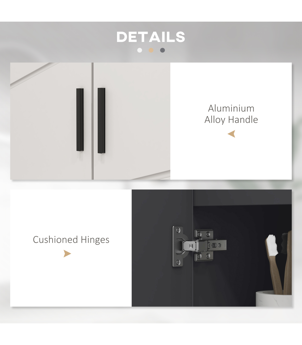 Cushioned hinges so each door closes softly and safely