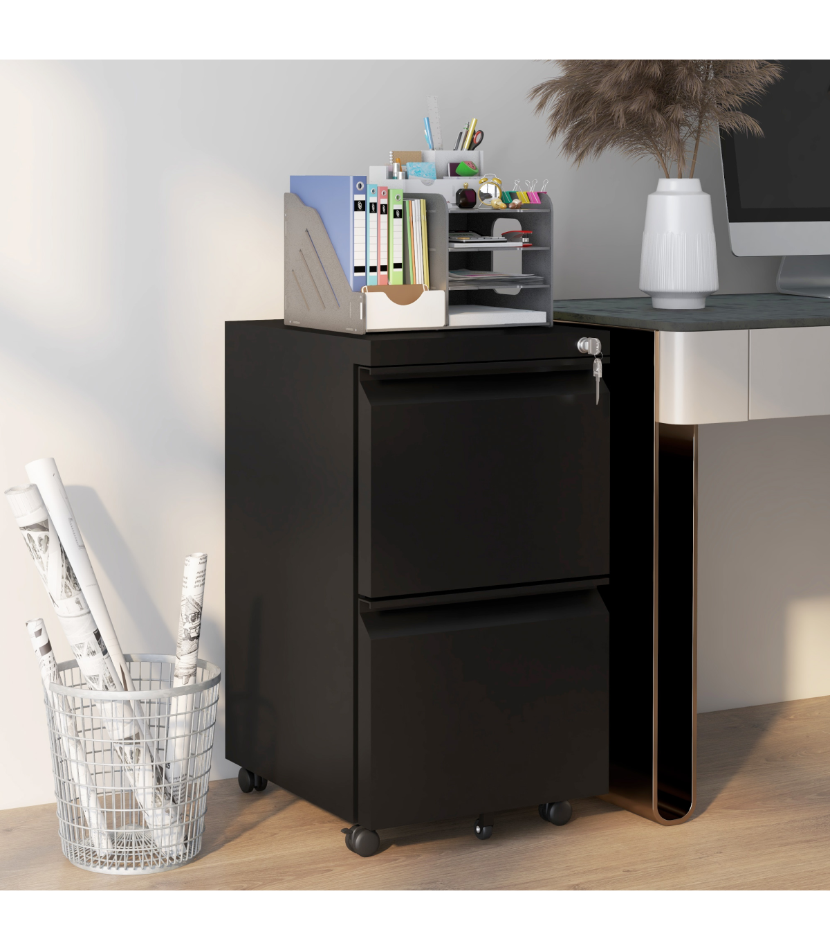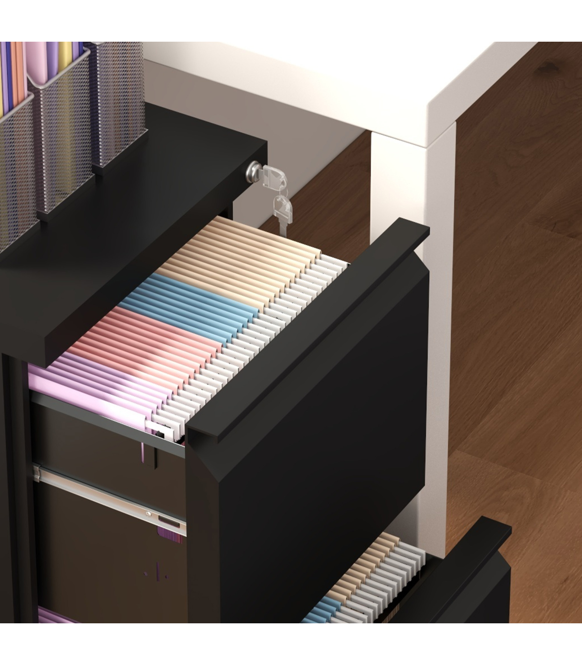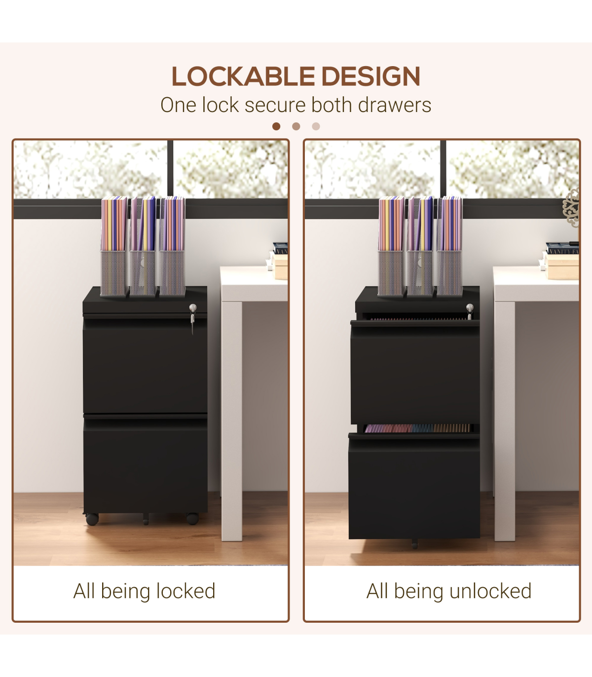 ? Top lock keeps both drawers locked for security - two keys included