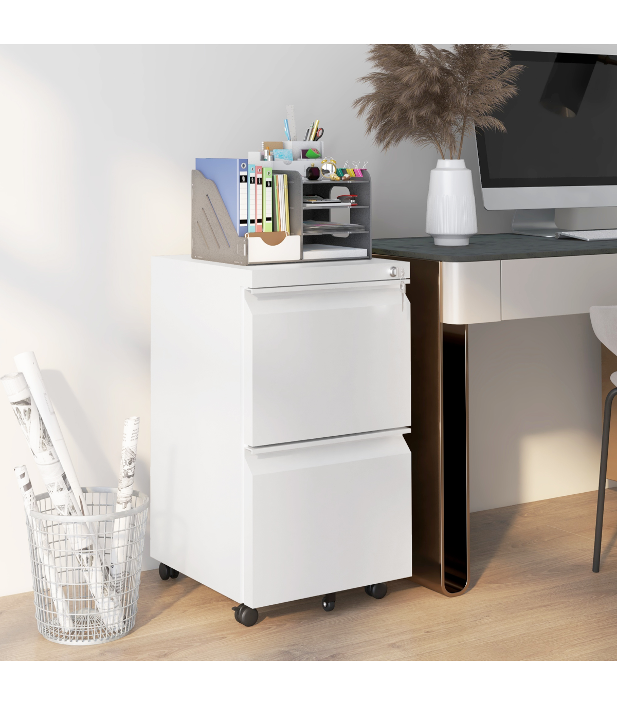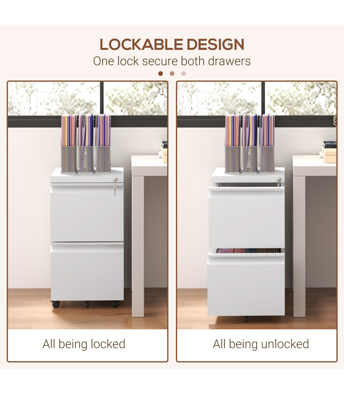 ? Top lock keeps both drawers locked for security - two keys included