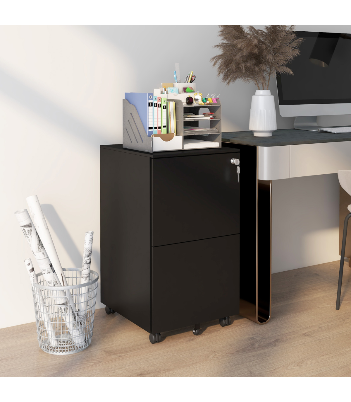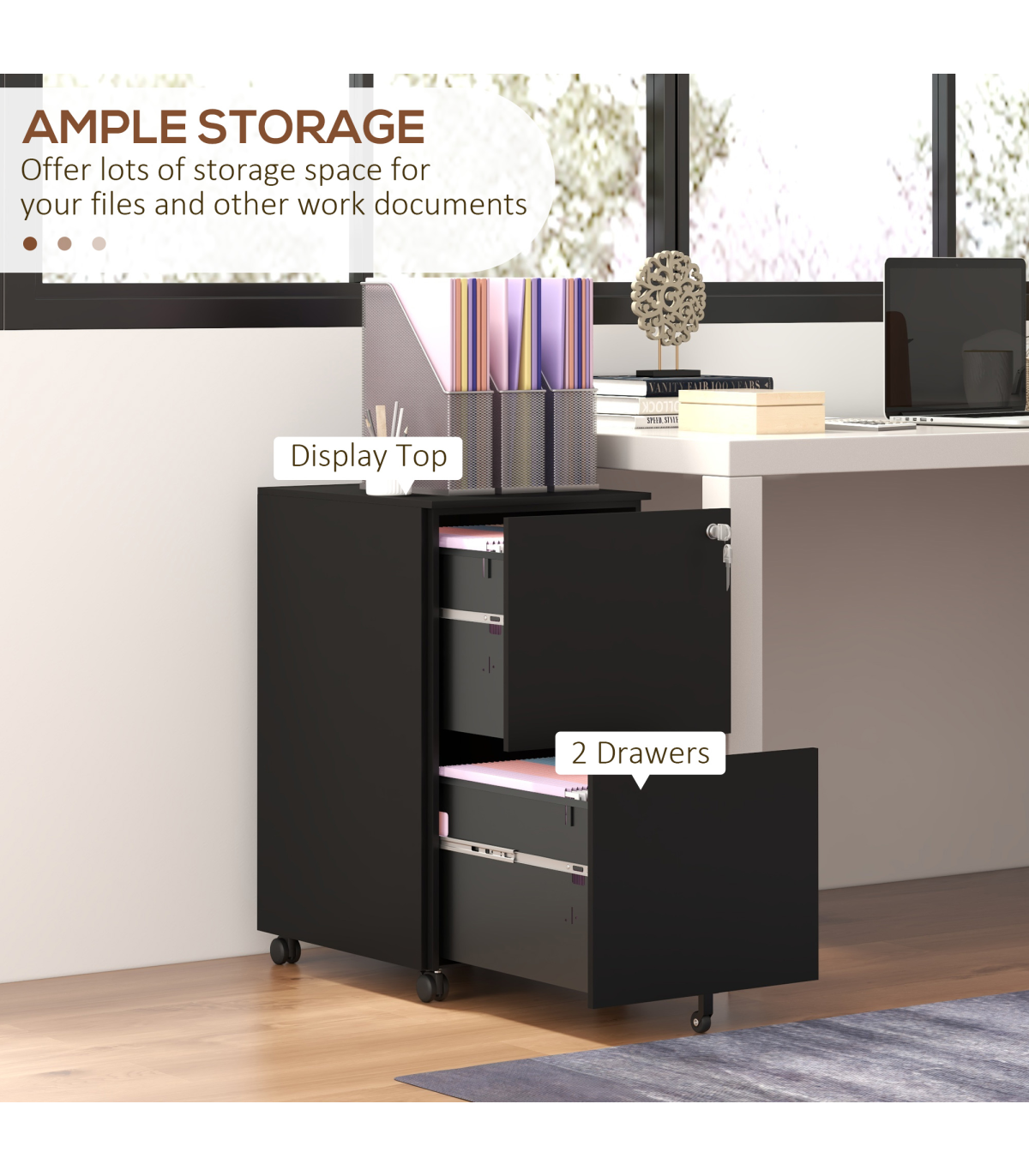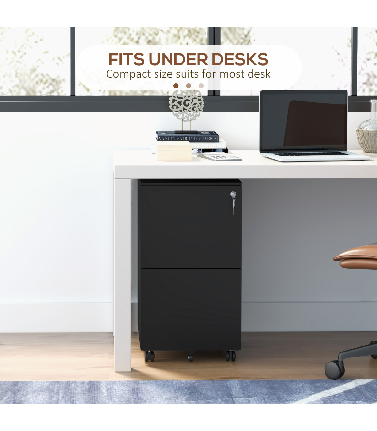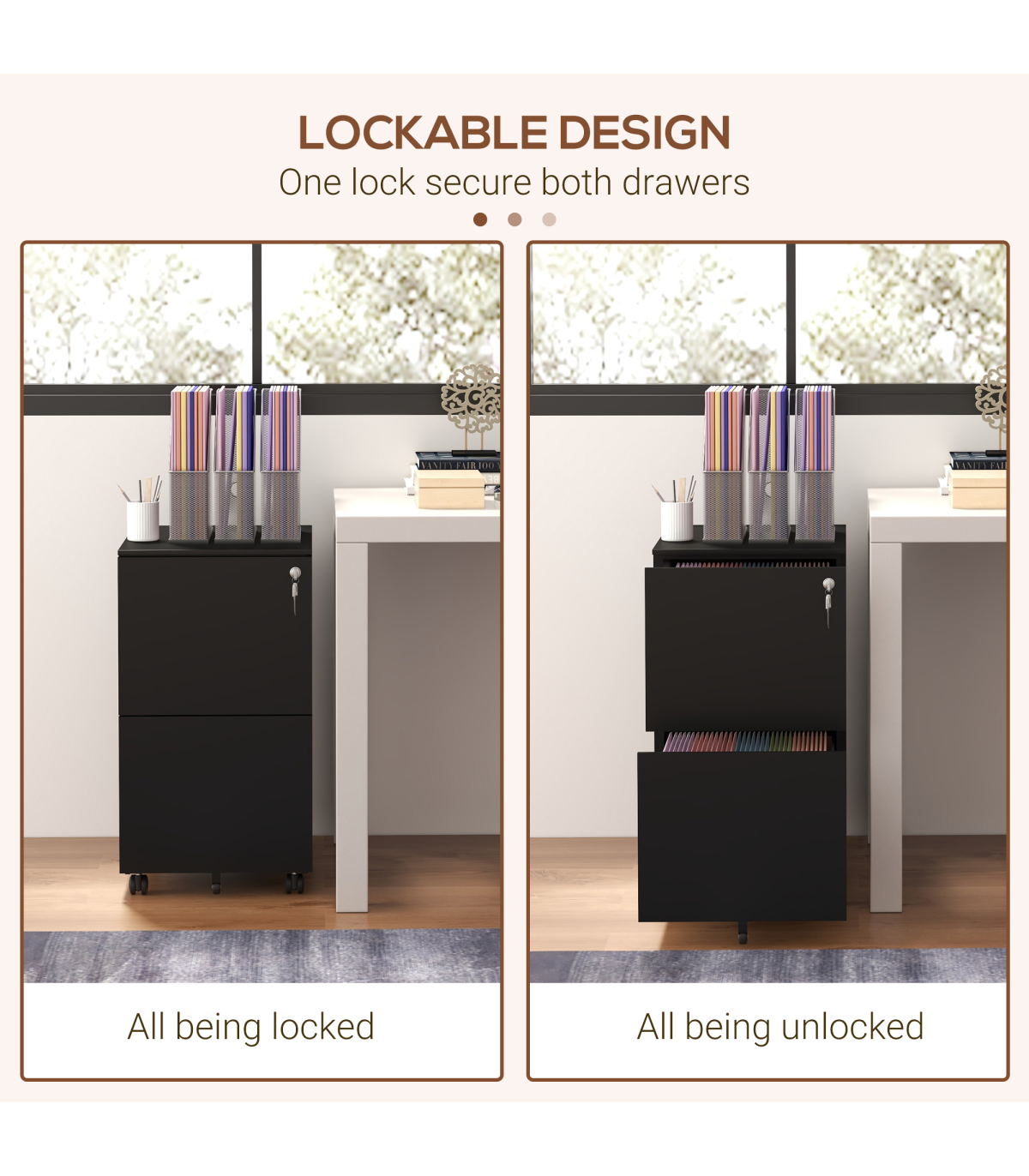 Easy and protected storage for the office - this Vinsetto filing cabinet. Made from steel, this is a strong and durable piece - it's made to be used everyday and is a safe shield for the inner contents. It comes with two drawers, so you can keep files stored and organised. The top lock keeps the two drawers locked at the same time, so you don't have to worry about unwanted people accessing inside when you're not around - two keys included.