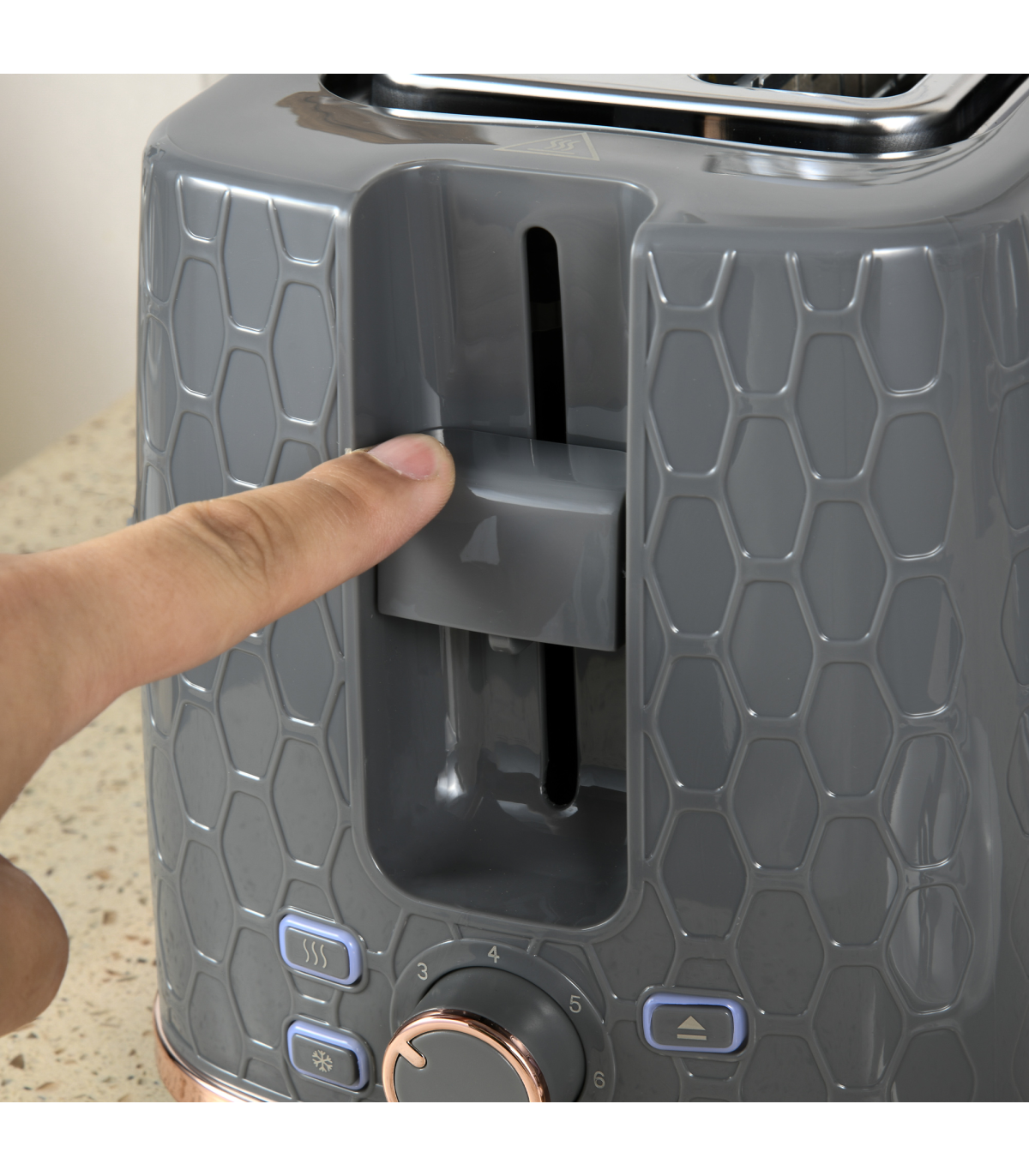 ? Your toast will automatically pop up when it's ready and auto-centring setting for even toasting result