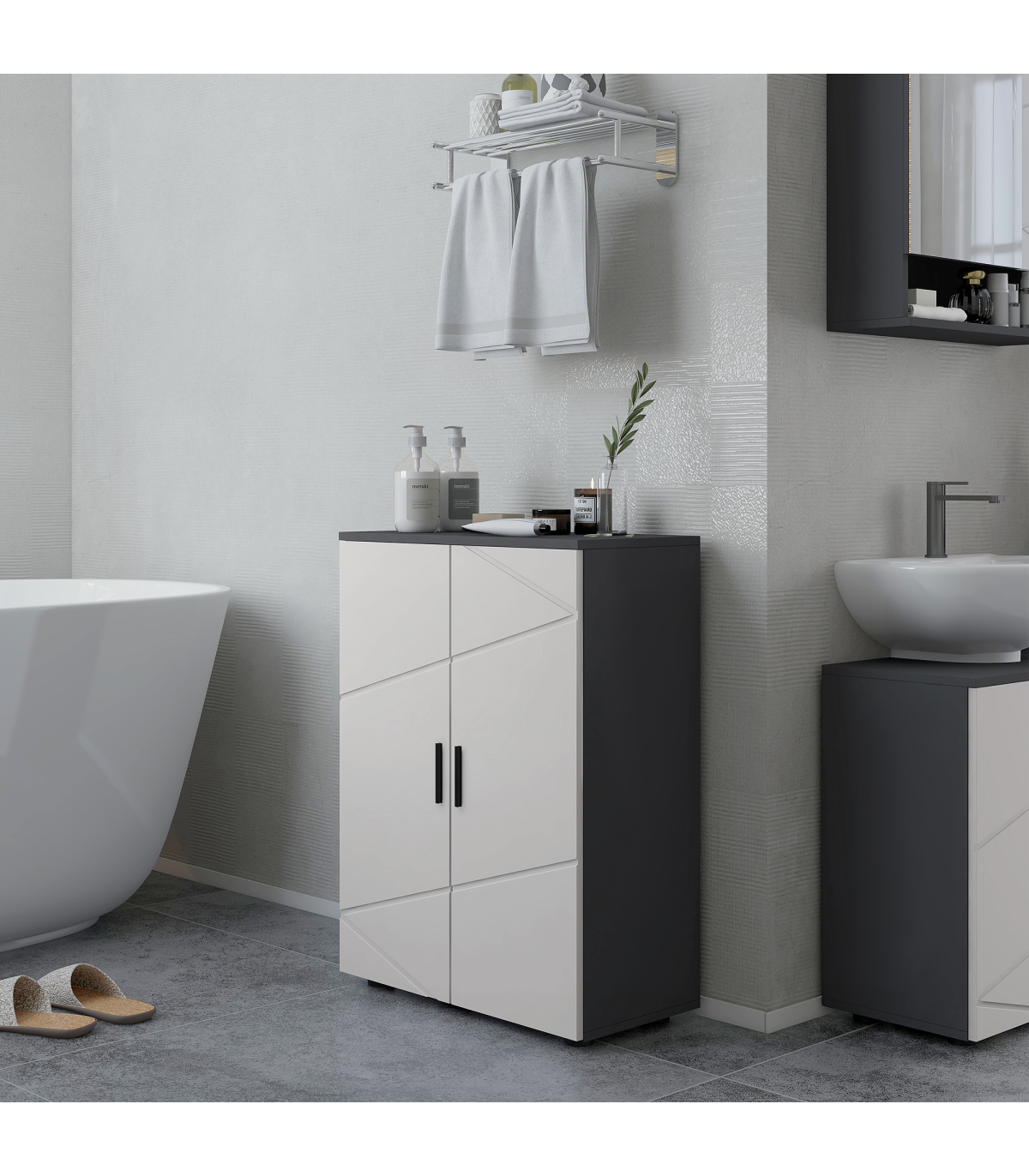 ? Dark grey body and light grey doors for a striking design, with gentle embossing for character