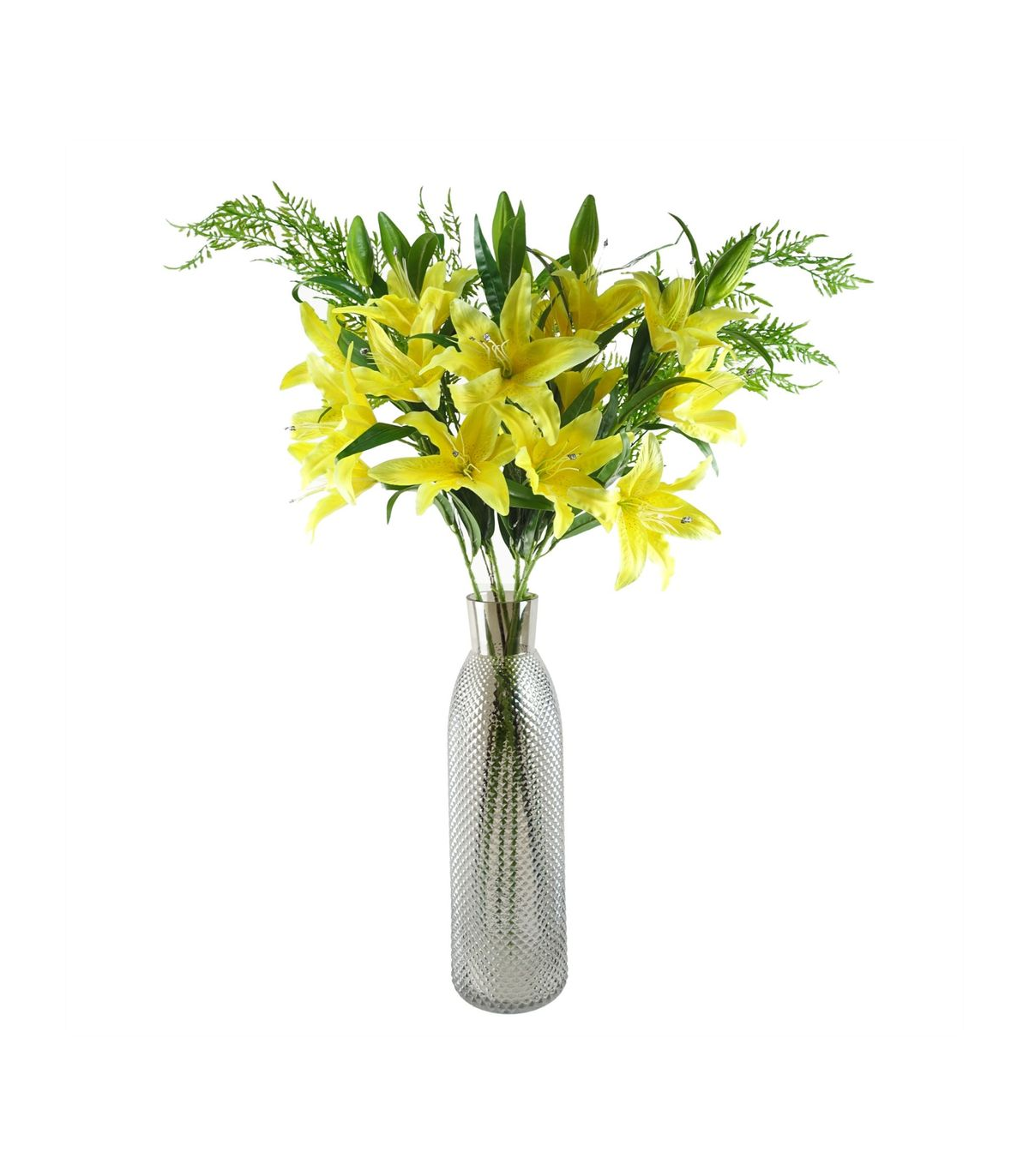 Pack of 6 x Boston Fern stem with plastic leaves. Can be used to make arrangements with our other artificial flowers or as decorations on their own. Each stem measures 120cm overall height x 15cm x 15cm. These are easy to cut down shorter using a pair of wire cutters if required. Some of our photos show vases to give an idea of size and possibilities for arrangement but no vases or planters are included with these ferns.