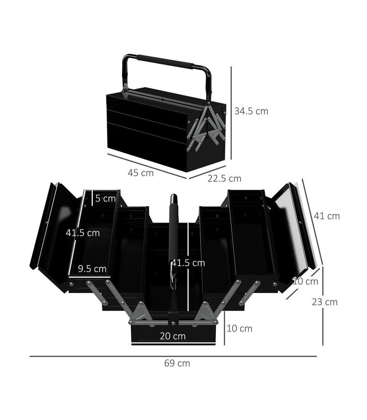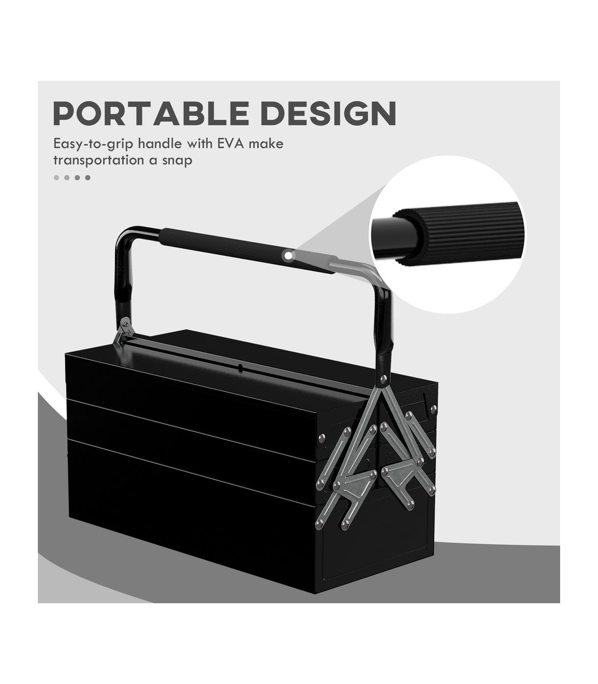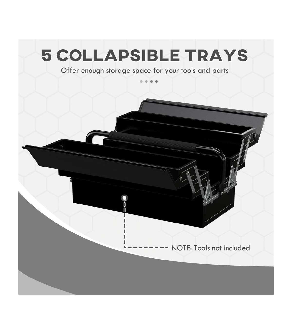 ● Features five inner collapsible trays, providing lots of storage space for tools and equipment