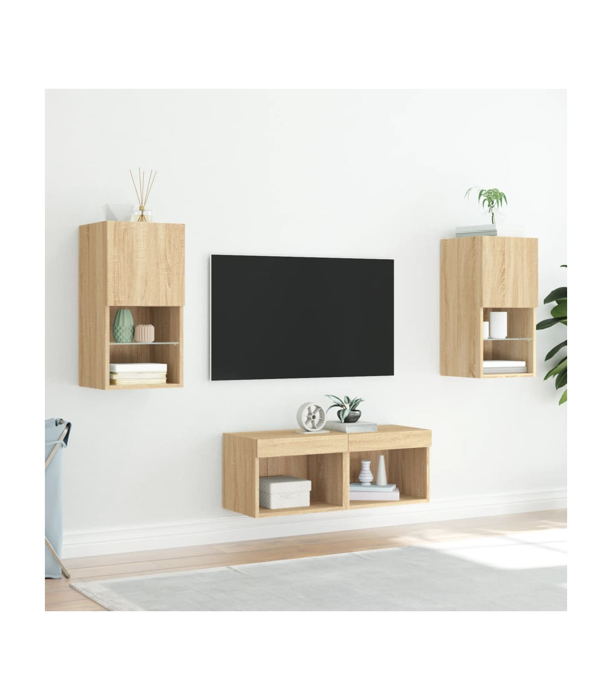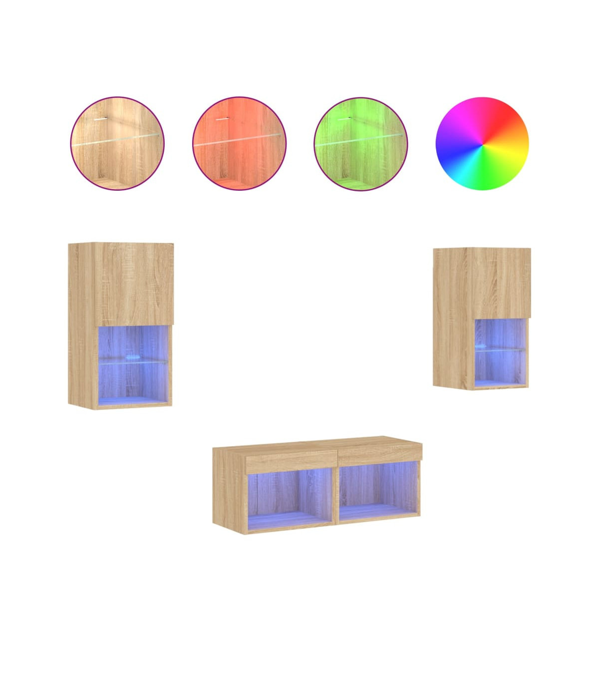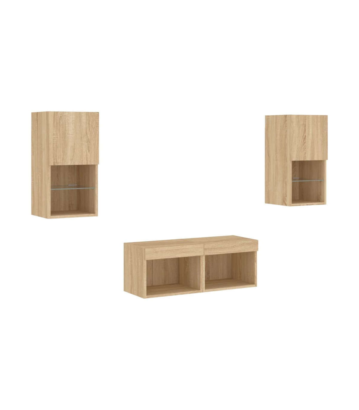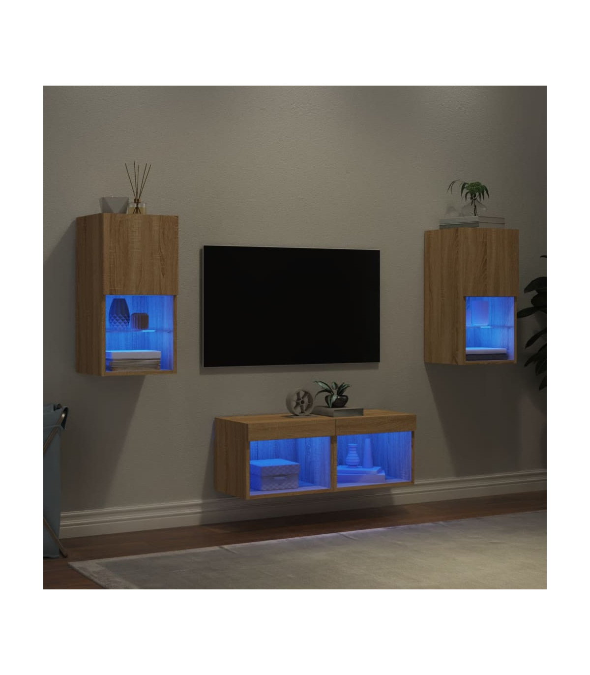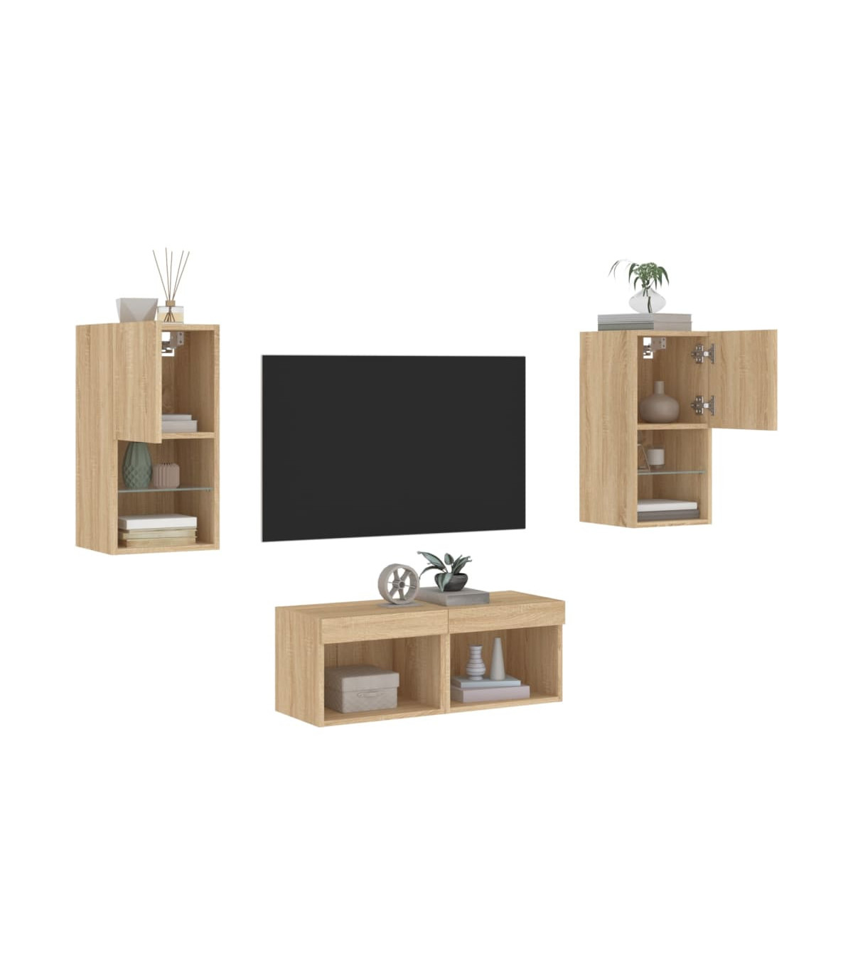 vidaXL 4 Piece TV Wall Cabinets with LED Lights Sonoma Oak