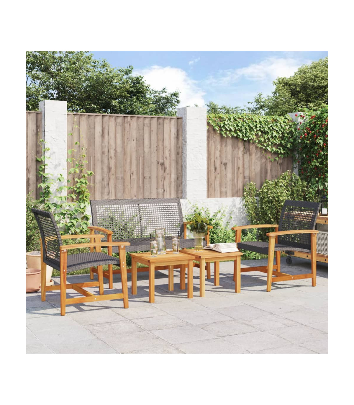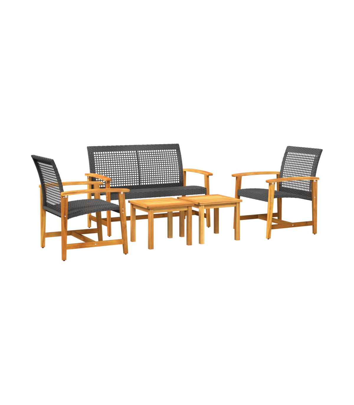 vidaXL 5 Piece Garden Lounge Set Black Poly Rattan and Acacia Wood