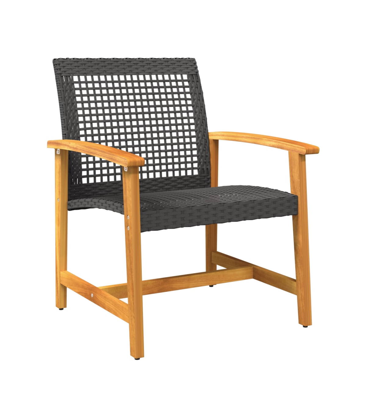 Relax and enjoy the outdoors in these comfortable garden chairs! Durable material: PE rattan, also known as poly rattan, is a strong, low-maintenance synthetic material that looks like natural rattan. It's lightweight, easy to clean, and commonly used for outdoor furniture due to its durability and weather-resistant properties.Comfortable seat experience: Featuring a supportive backrest and wooden armrests, the garden seat gives you the utmost comfort.Robust and stable frame: The metal and wooden frame ensures the garden furniture is strong and stable for daily outdoor use. Good to know:To make sure your outdoor furniture stays beautiful, we recommend protecting it with a waterproof cover.