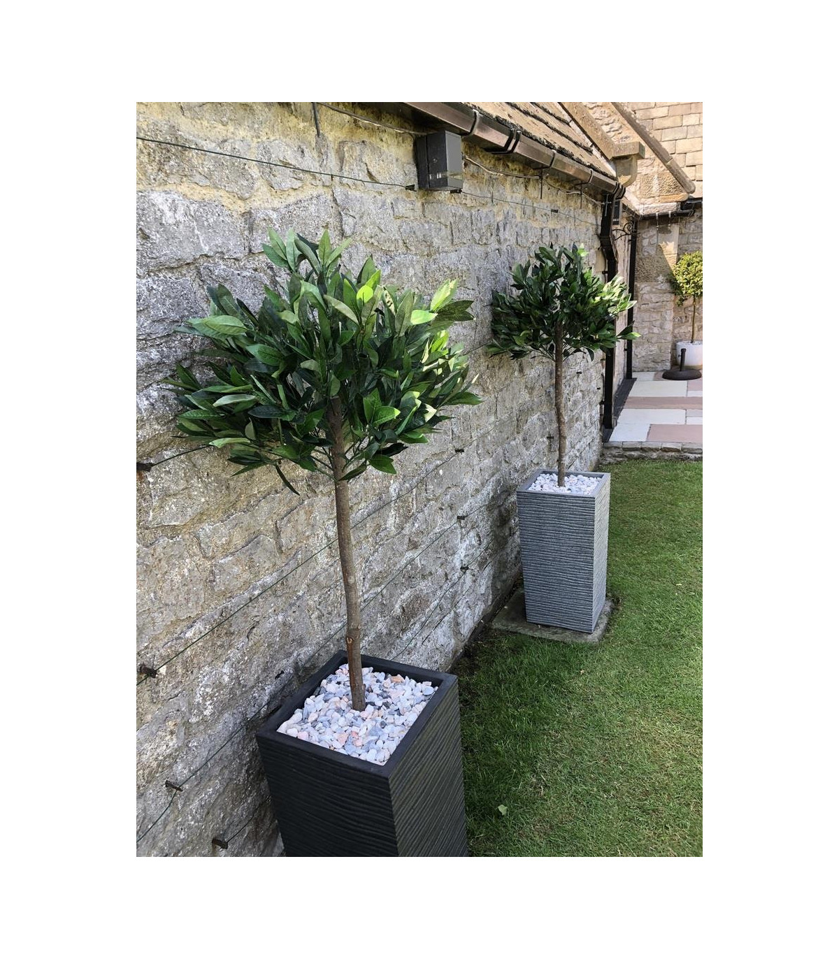 Bay trees and bushes are a classic entrance plant. Real ones can be hard to care for but our artificial bay trees are fantastically realistic and require no maintenance! Price is for a PAIR of matching trees - ideal for entrances. Each tree is 120cm (4ft) tall. They come potted in plastic pots and are ready to display - just arrange the stems as you wish. It is also very simple to put into a larger planter - just pop inside and cover with gravel or bark.