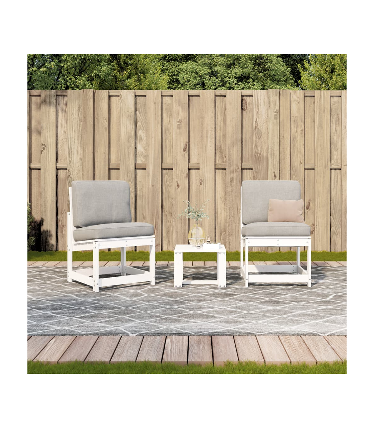 vidaXL 3 Piece Garden Lounge Set White Solid Wood Pine