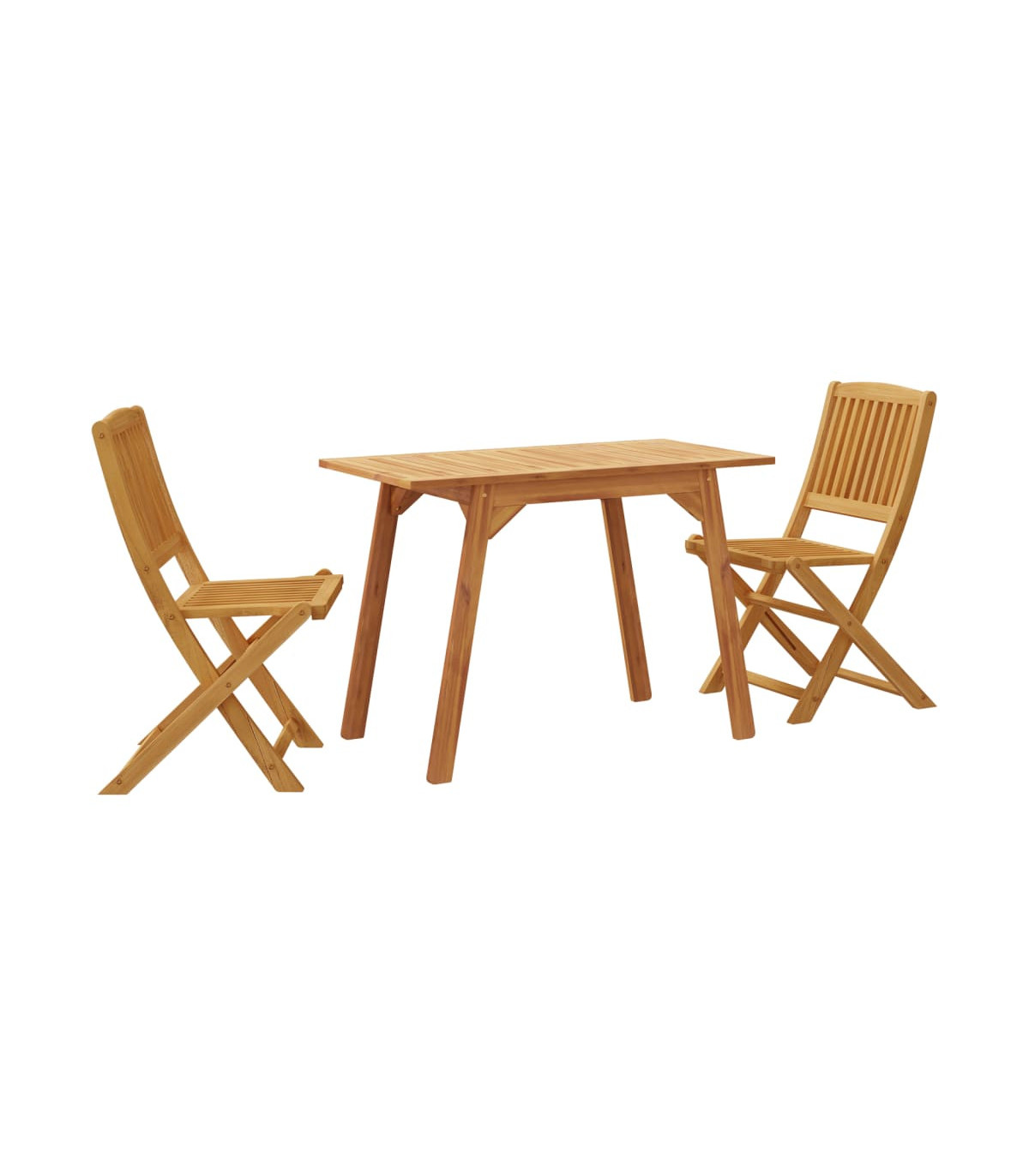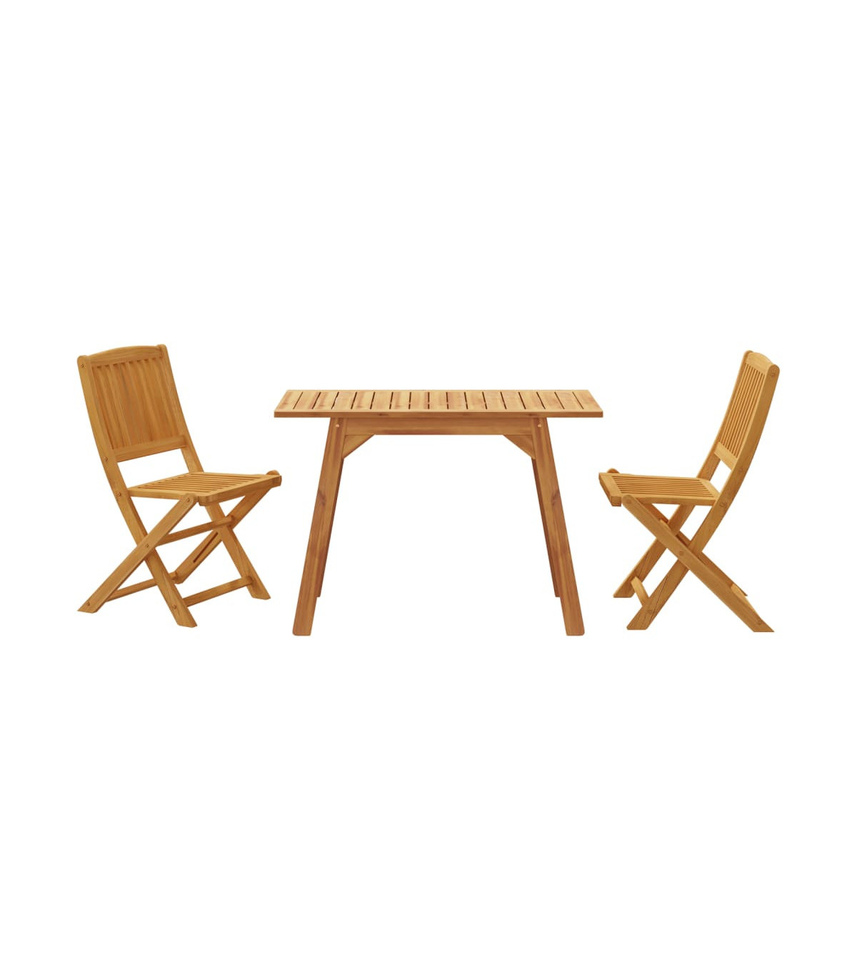 This wooden dining set is a great choice for al fresco dining or just relaxing in the garden, backyard, or patio. Solid acacia wood: The garden set is made of solid acacia wood. Solid acacia wood is a beautiful natural material. Acacia wood has beautiful wood grains make every piece of furniture unique and slightly different from each other.Stable and easy-to-clean tabletop: This garden table has an acacia wood top that is sturdy, durable, and easy to clean with a damp cloth.Foldable design: This seat can be easily folded up for convenient storage and transport. Good to know:To make sure your outdoor furniture stays beautiful, we recommend protecting it with a waterproof cover.