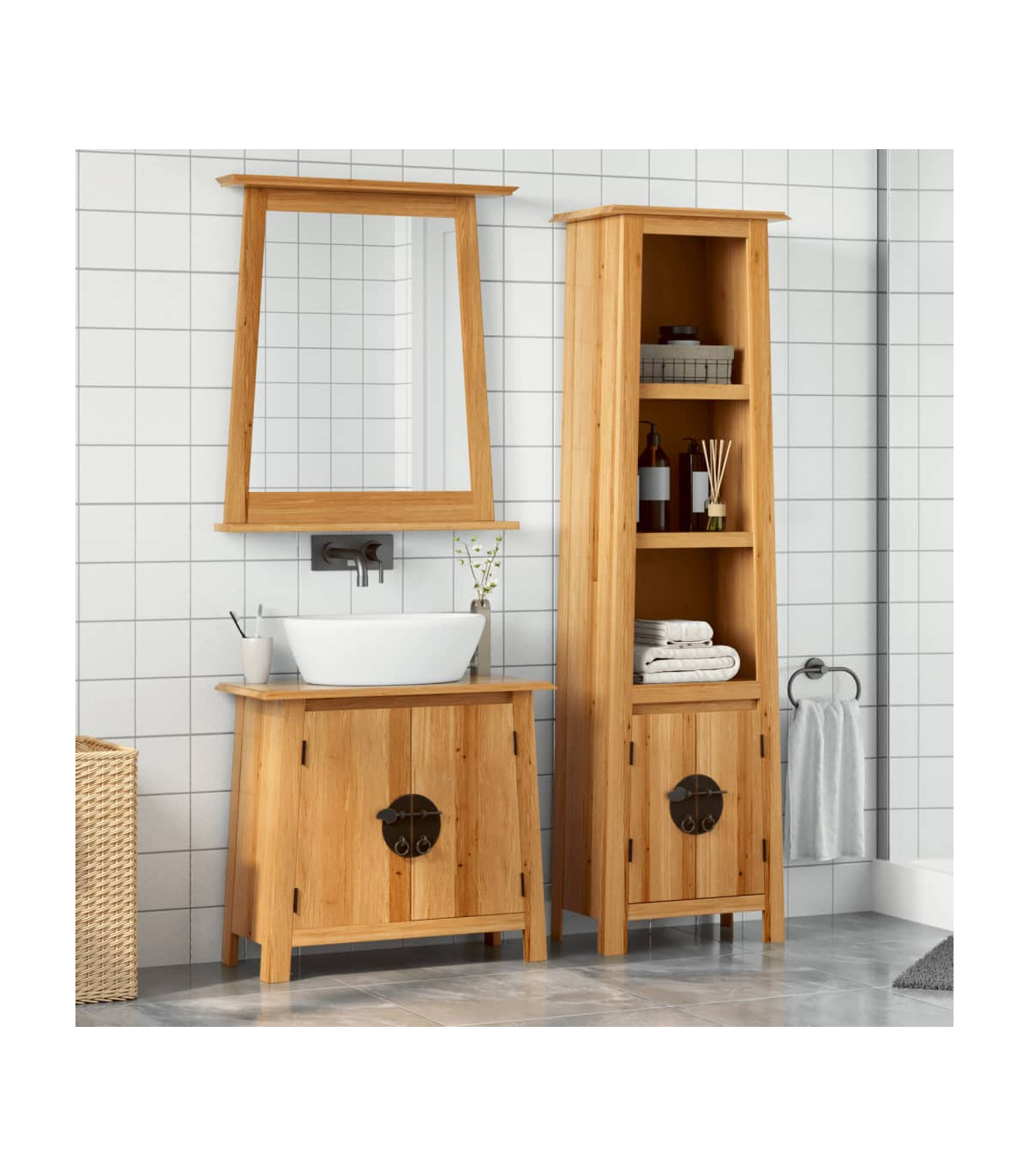 This bathroom furniture set is an excellent addition to your bathroom, giving it a tidy and striking appearance! Solid pine wood: Solid pine wood is a beautiful natural material. Pine wood has a straight grain, and the knots give the material its signature, rustic look.Ample storage space: The bath cabinet offers ample space to easily accommodate your essential toiletries and bath items such as soaps, shampoo, toothpaste, etc.Convenient handles: The metal handles allow you to open the bathroom storage cabinet easily to get what you want.Wall-mounted function: The bathroom wall cabinet can be wall-mounted for extra storage space. That way, you can maximise your floor space and keep the area clean. Warning:To prevent it from tipping over, this product must be used with the wall attachment device (not provided). Good to know:Each item is unique with variations in colours and grains. The delivery is random, ensuring the exclusivity and individuality of your product.