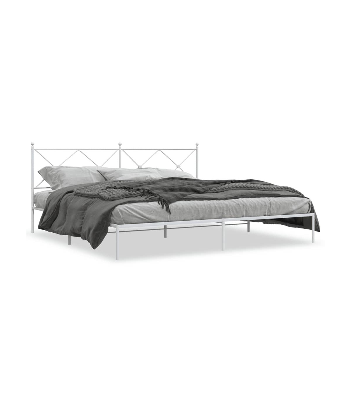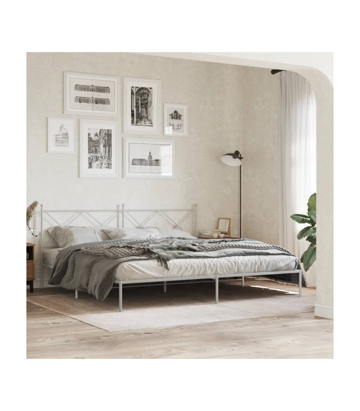 vidaXL Metal Bed Frame with Headboard White 193x203 cm