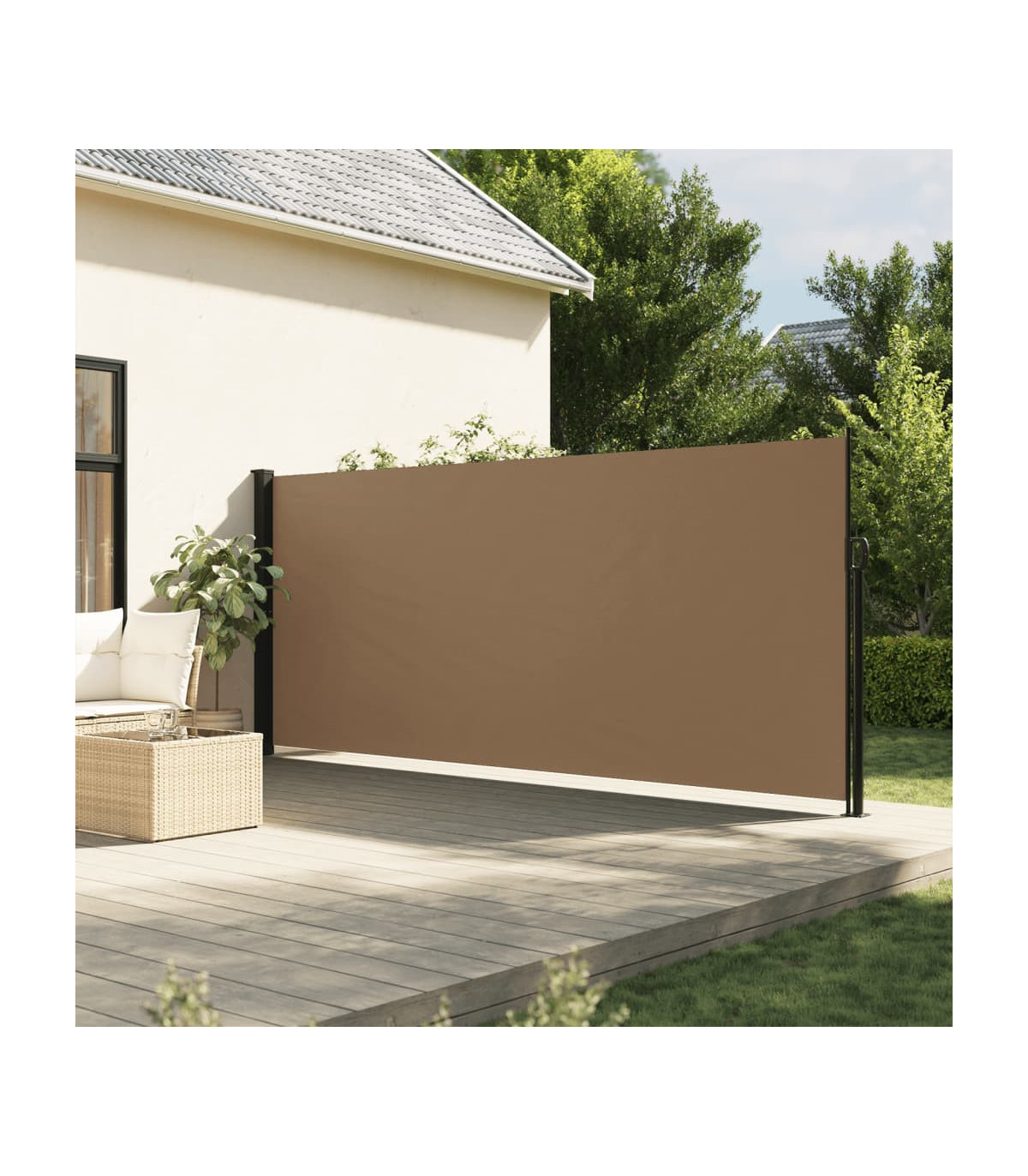 Create an instant and private oasis on your balcony, terrace, or patio using this retractable side awning! Water and UV resistant: This garden privacy screen is made from 100% polyester with a polyurethane (PU) coating, providing good breathability and excellent protection against wind, sun, water, and UV light.Convenient design: Thanks to its retractable design, the garden screen automatically rolls back when you remove the handle from the post.Easy installation: The two posts can be easily fixed to the wall and ground for added stability and safety using the included mounting accessories.Wide applications: This versatile side awning can be used in a variety of settings, both outdoors like backyard, terrace, garden, porch, balcony and indoors such as office, clinic, studio, dressing room, to create extra wall space as required.