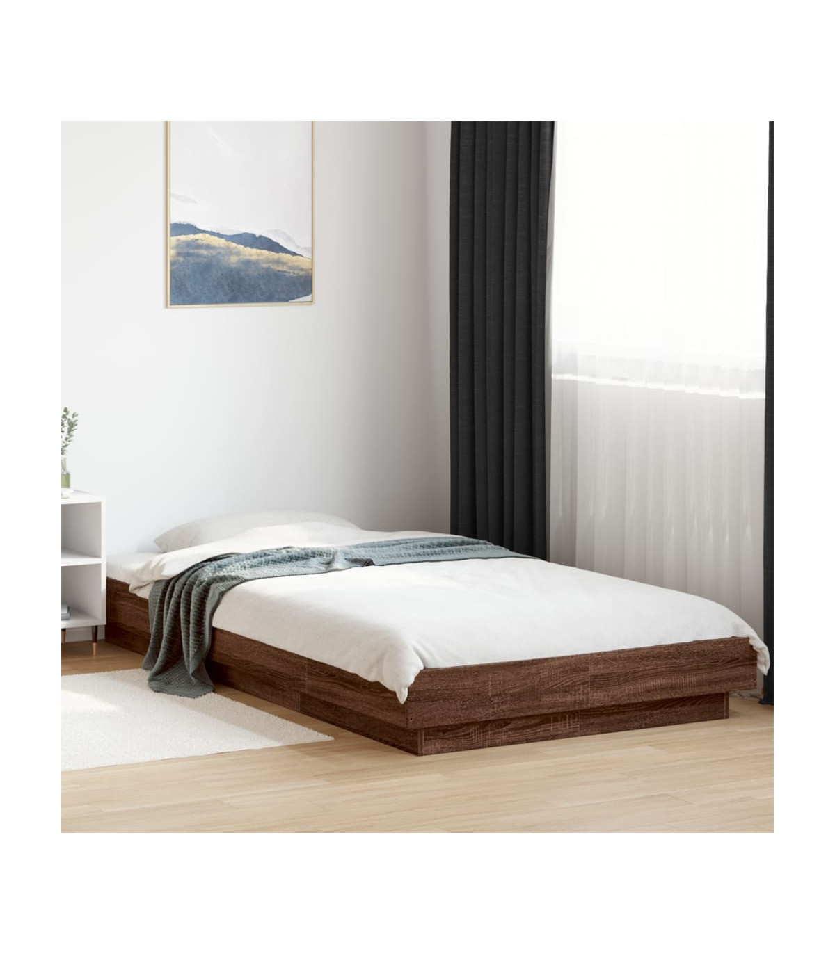 vidaXL Bed Frame with LED Lights Brown Oak 75x190cm Small Single Engineered Wood