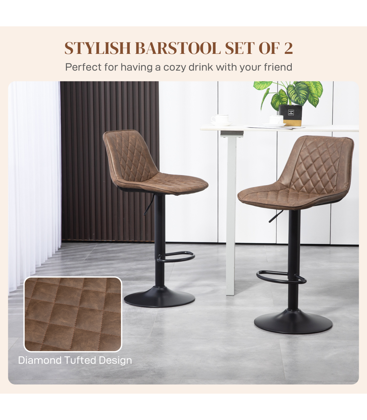 HOMCOM Bar Stools Set of 2, Adjustable Bar Chairs 360° Swivel for Kitchen Brown