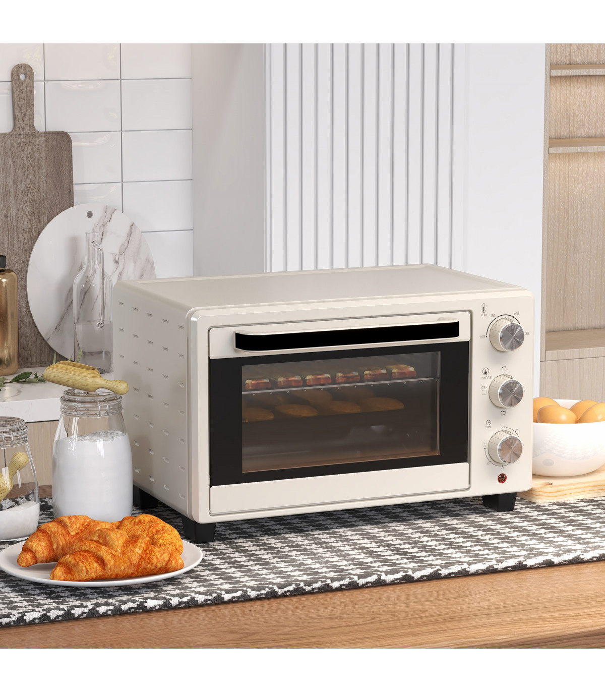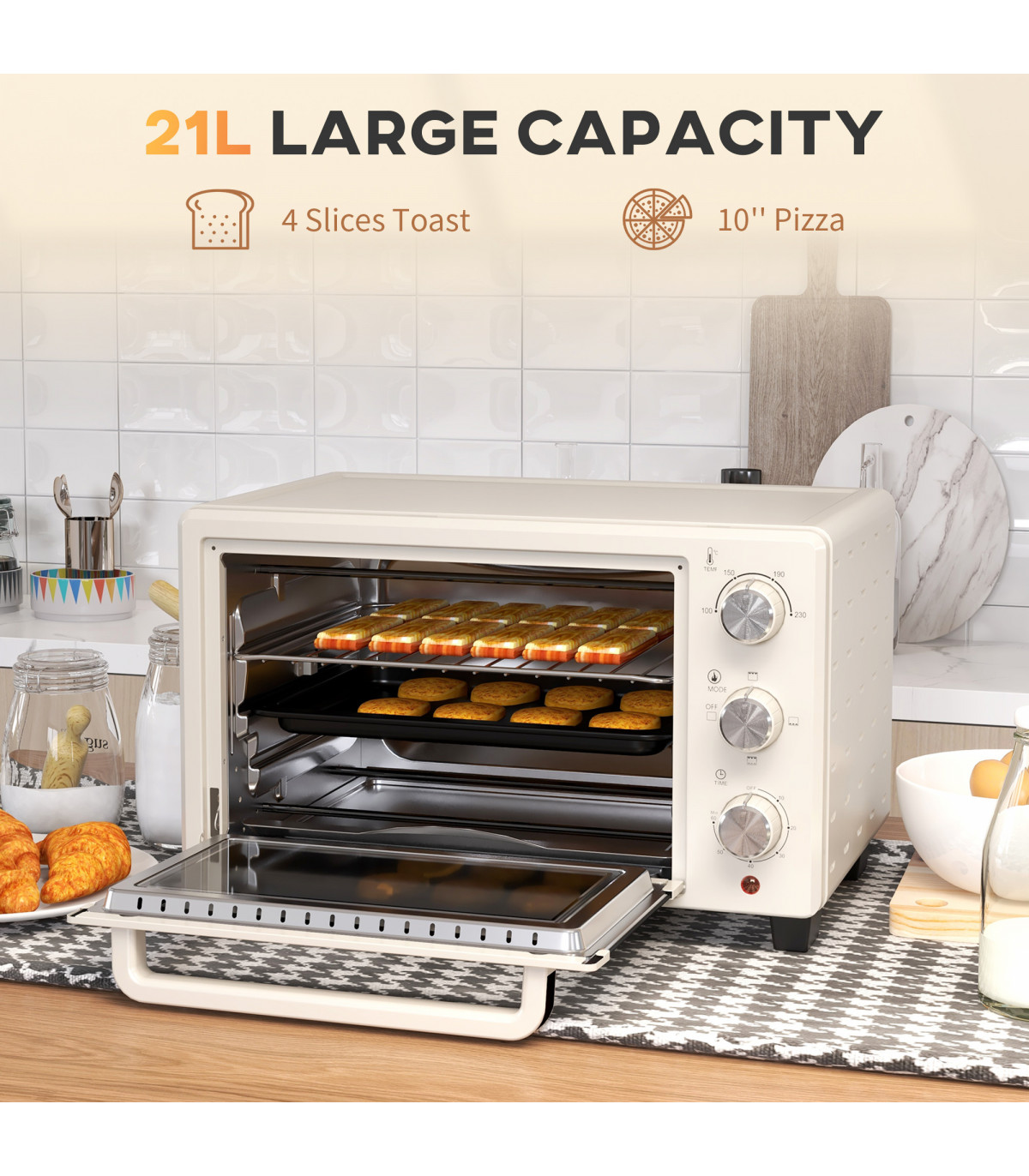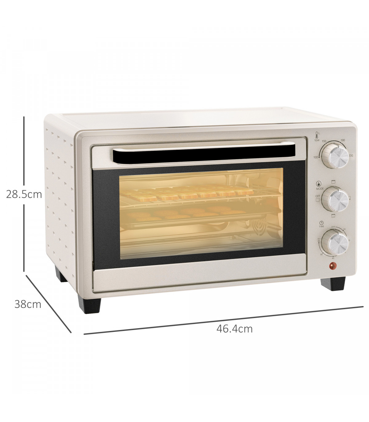 HOMCOM Mini Oven 21L Electric Grill w/ Adjustable Temp Timer 1400W, Cream