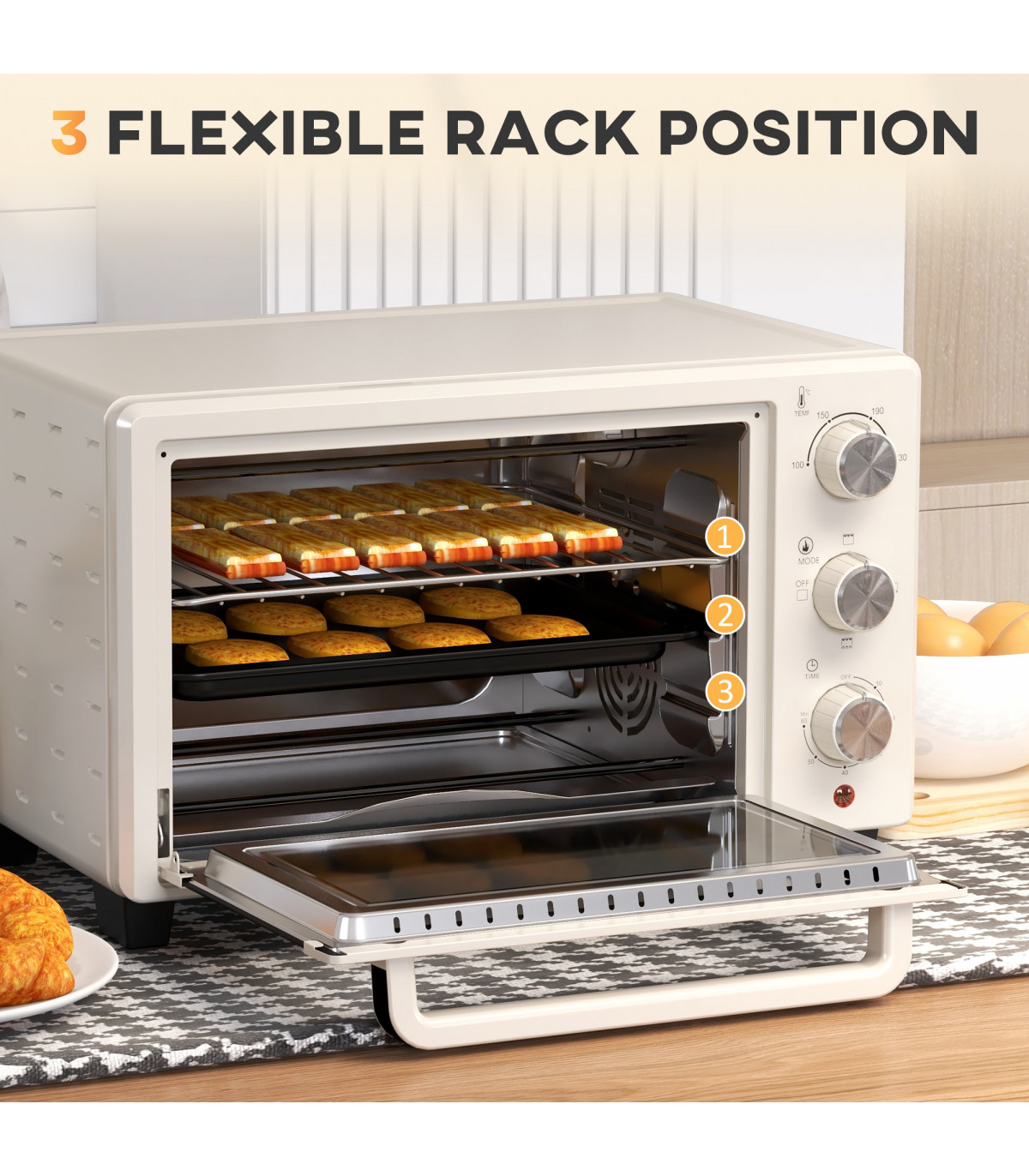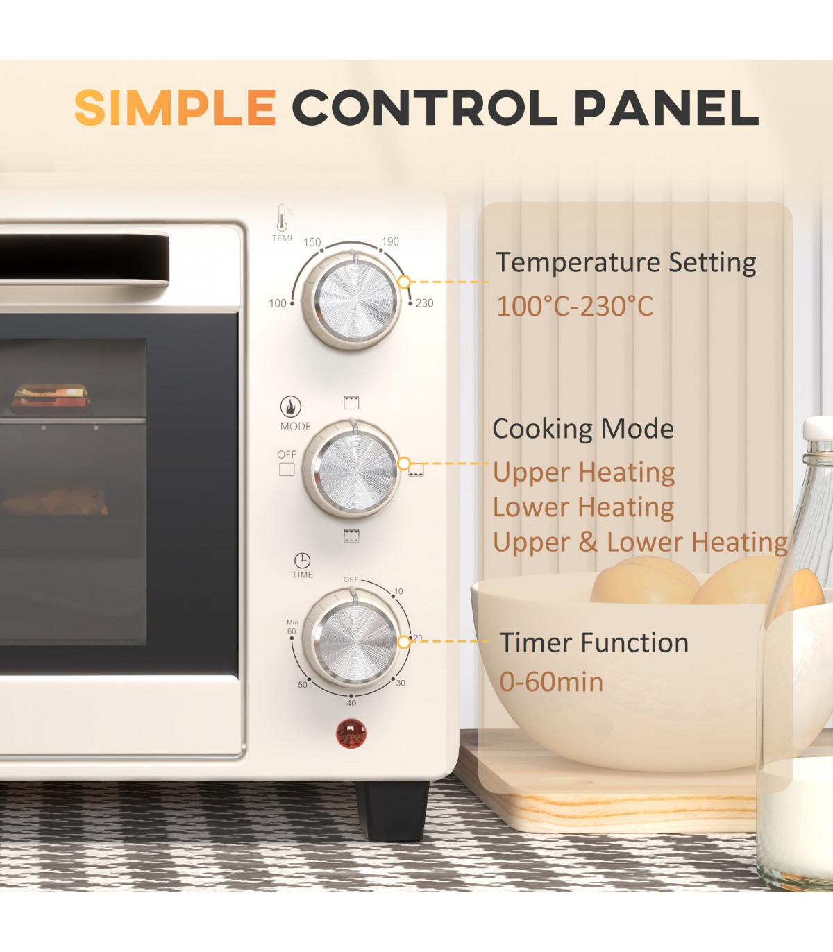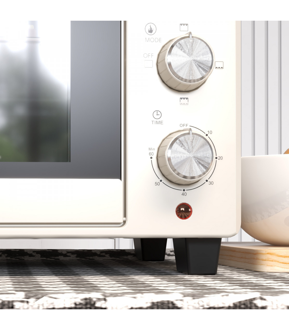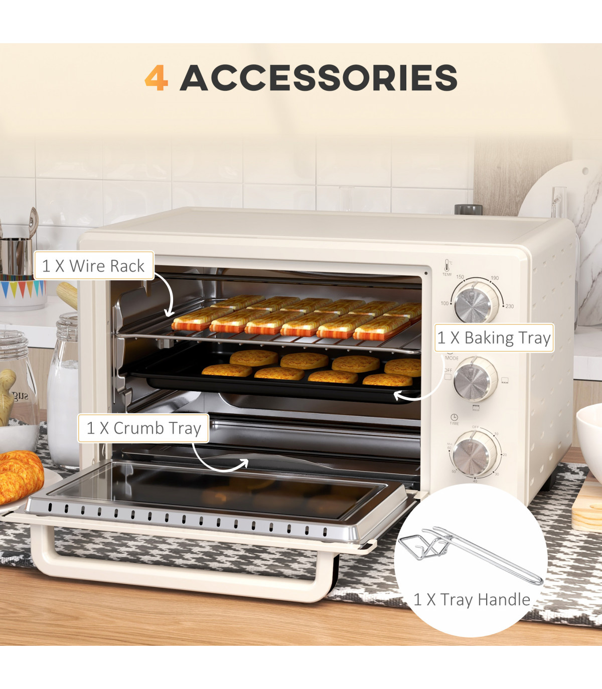 HOMCOM Mini Oven 21L Electric Grill w/ Adjustable Temp Timer 1400W, Cream