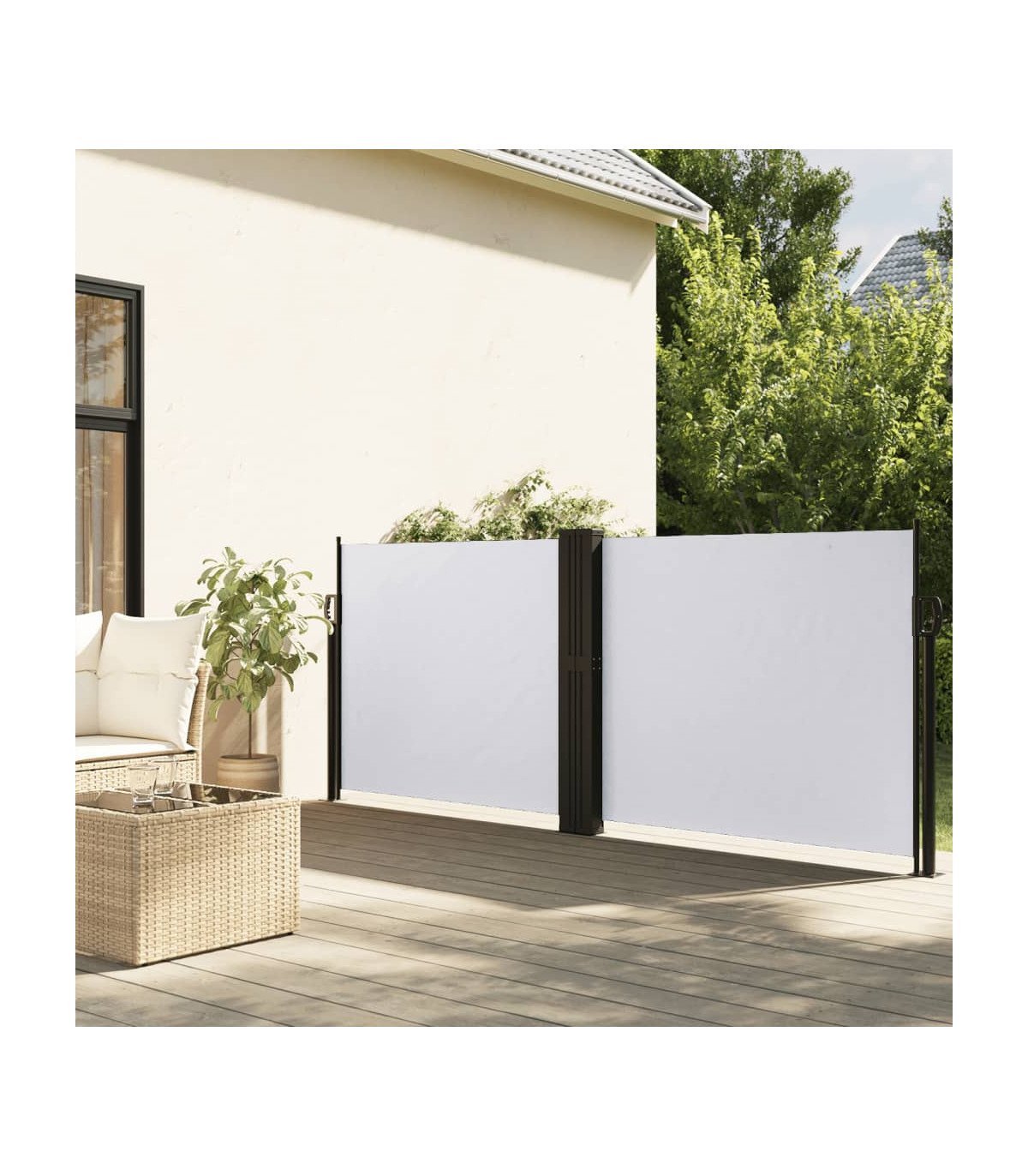 Create an instant and private oasis on your balcony, terrace, or patio using this retractable side awning! Water and UV resistant: This garden privacy screen is made from 100% polyester with a polyurethane (PU) coating, providing good breathability and excellent protection against wind, sun, water, and UV light.Convenient design: Thanks to its retractable design, the garden screen automatically rolls back when you remove the handle from the post.Easy installation: The posts can be easily fixed to the ground for added stability and safety using the included mounting accessories.Wide applications: This versatile side awning can be used in a variety of settings, both outdoors like backyard, terrace, garden, porch, balcony and indoors such as office, clinic, studio, dressing room, to create extra wall space as required.