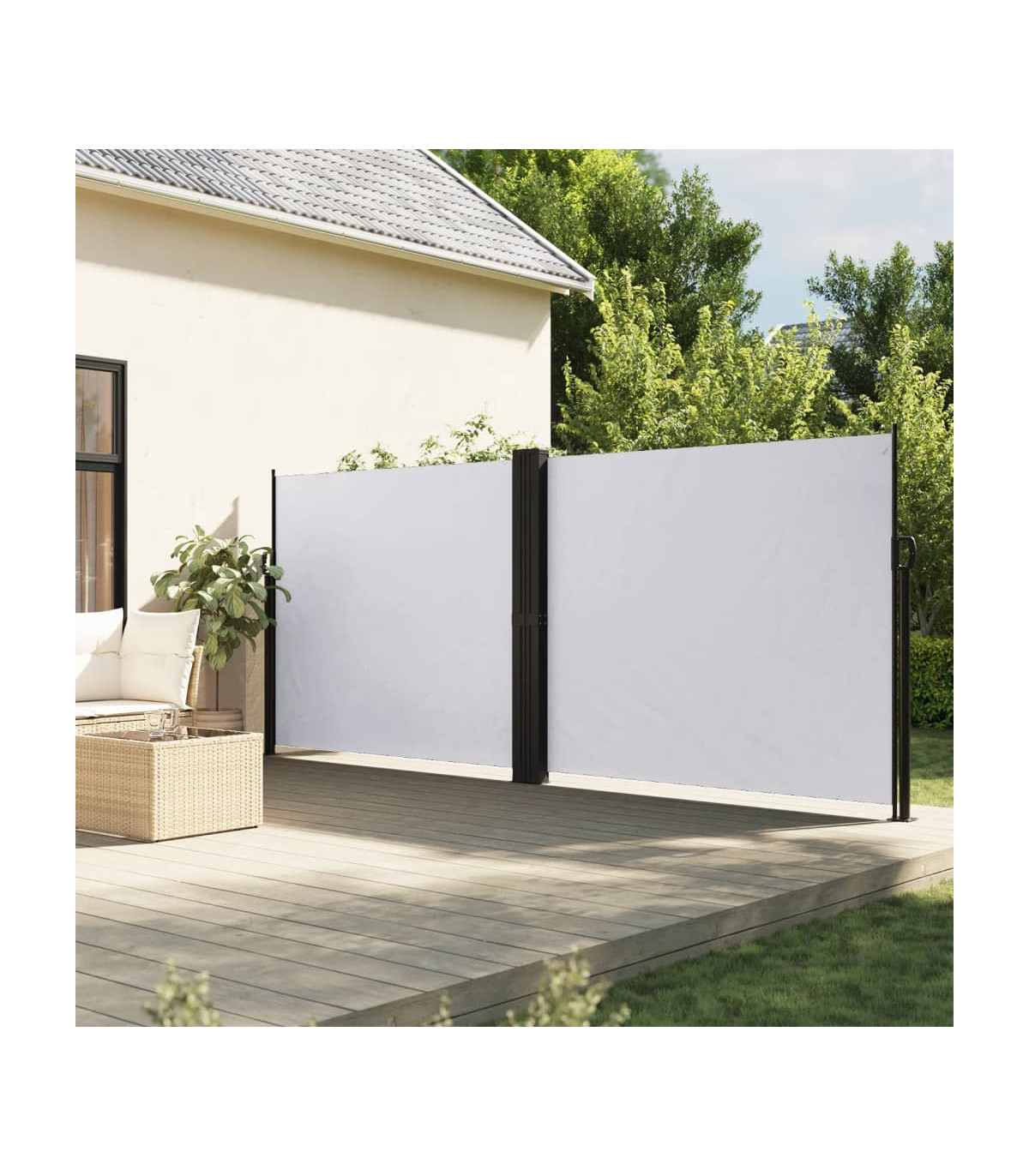 Create an instant and private oasis on your balcony, terrace, or patio using this retractable side awning! Water and UV resistant: This garden privacy screen is made from 100% polyester with a polyurethane (PU) coating, providing good breathability and excellent protection against wind, sun, water, and UV light.Convenient design: Thanks to its retractable design, the garden screen automatically rolls back when you remove the handle from the post.Easy installation: The posts can be easily fixed to the ground for added stability and safety using the included mounting accessories.Wide applications: This versatile side awning can be used in a variety of settings, both outdoors like backyard, terrace, garden, porch, balcony and indoors such as office, clinic, studio, dressing room, to create extra wall space as required.