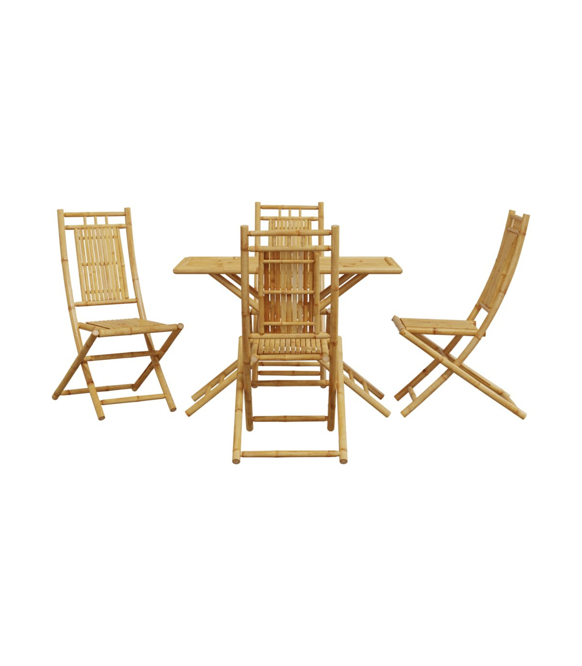 This garden dining set, with an elegant and contemporary design, will be a great choice for dining or relaxing in the garden. Durable and long-lasting: As a natural material, bamboo boasts good breathability and a low odour. These qualities make the garden dining set durable, water-resistant, and long-lasting.Foldable design: The outdoor dining table and chairs can be easily folded away when not in use, for easy storage and transportation.Stable top: The stable top of the garden table is ideal for placing your drink or any other necessity you need close at hand.Comfortable seating experience: Featuring a backrest, the outdoor chair gives you the utmost comfort. Good to know:To make sure your outdoor furniture stays beautiful, we recommend protecting it with a waterproof cover.
