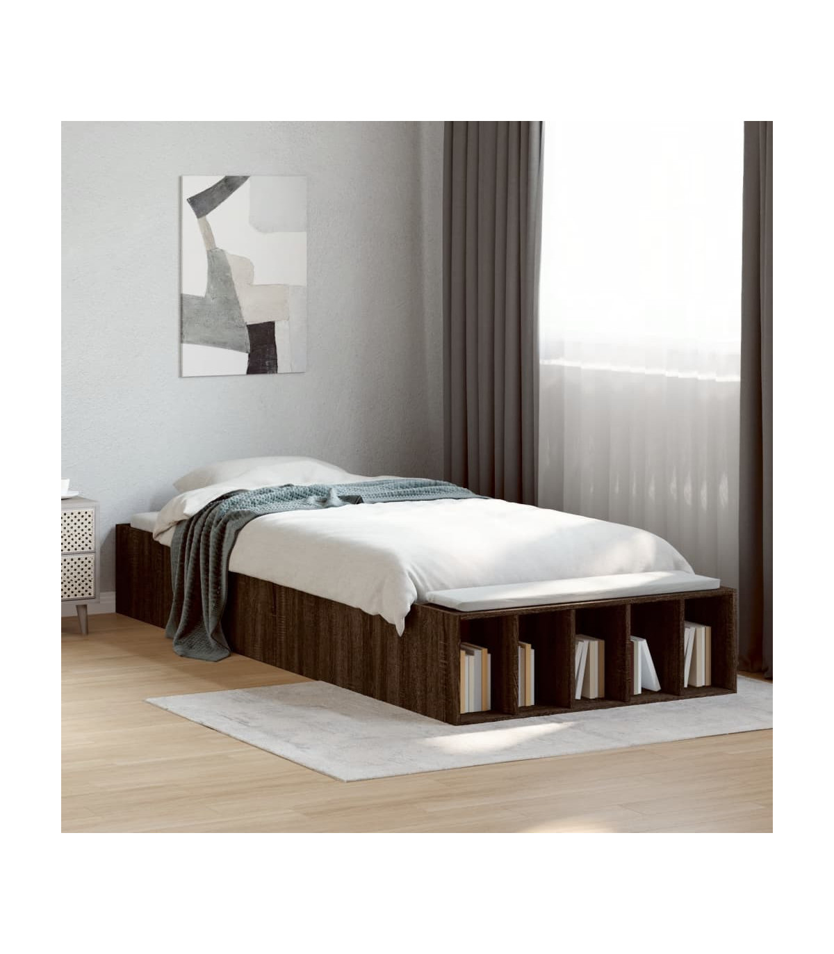 vidaXL Bed Frame Brown Oak 75x190 cm Small Single Engineered Wood