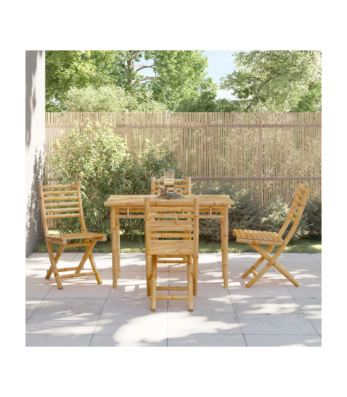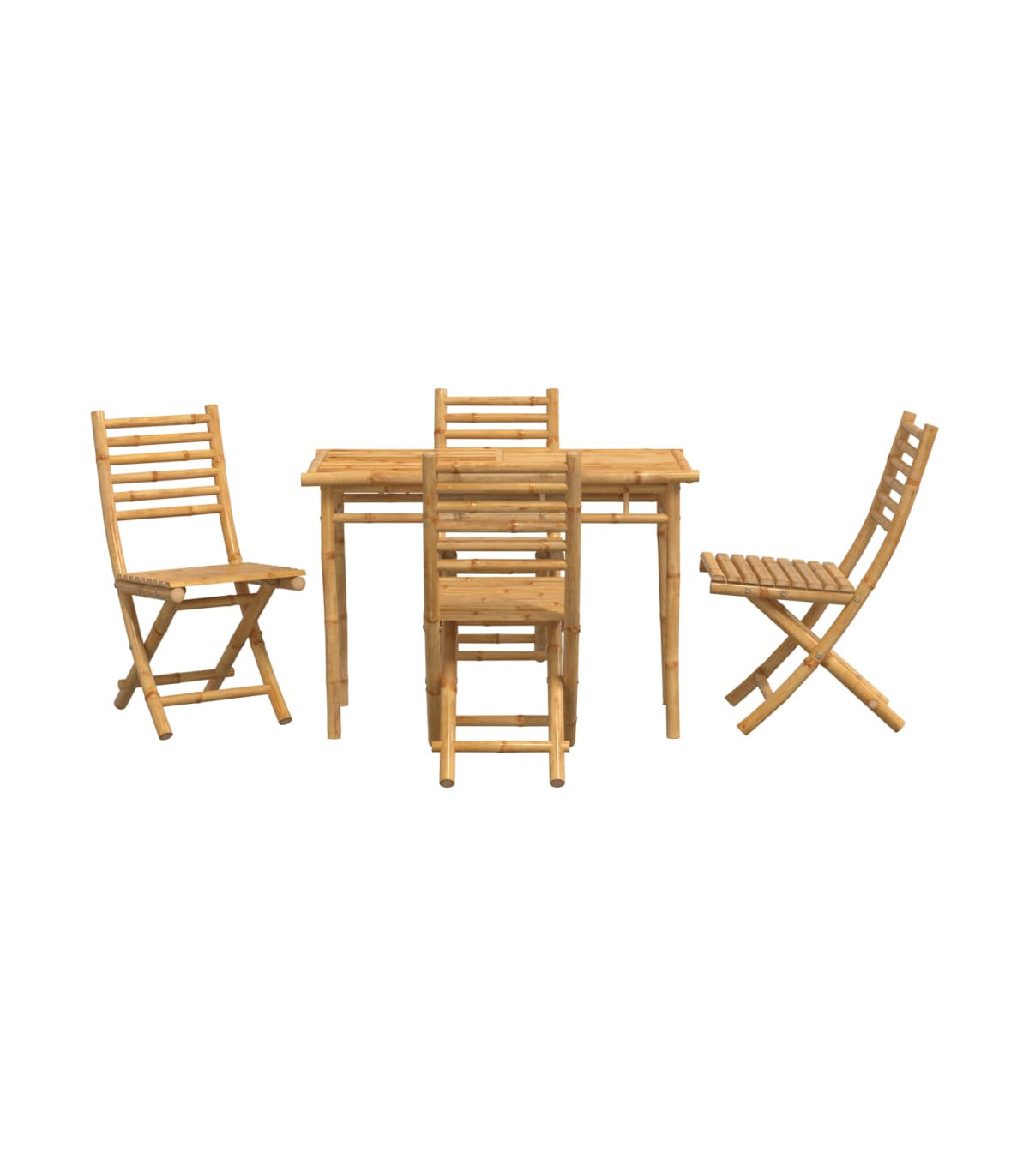 This garden dining set, with an elegant and contemporary design, will be a great choice for dining or relaxing in the garden. Durable and long-lasting: As a natural material, bamboo boasts good breathability and a low odour. These qualities make the garden dining set durable, water-resistant, and long-lasting.Foldable design: The dining chair can be easily folded away when not in use, for easy storage and transportation.Stable top: The stable top of the garden table is ideal for placing your drink or any other necessity you need close at hand.Comfortable seating experience: Featuring a backrest, the outdoor chair gives you the utmost comfort. Good to know:To make sure your outdoor furniture stays beautiful, we recommend protecting it with a waterproof cover.