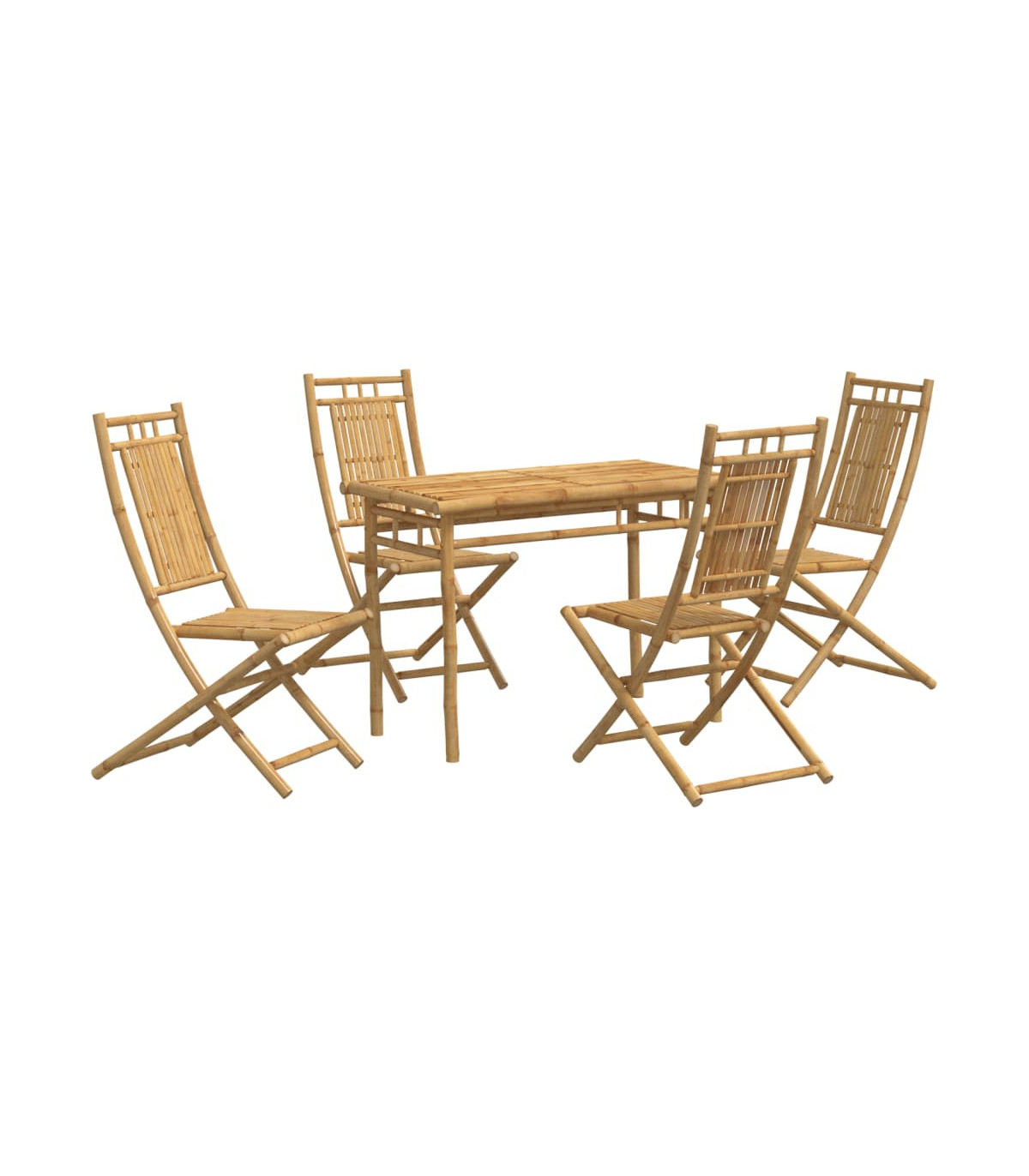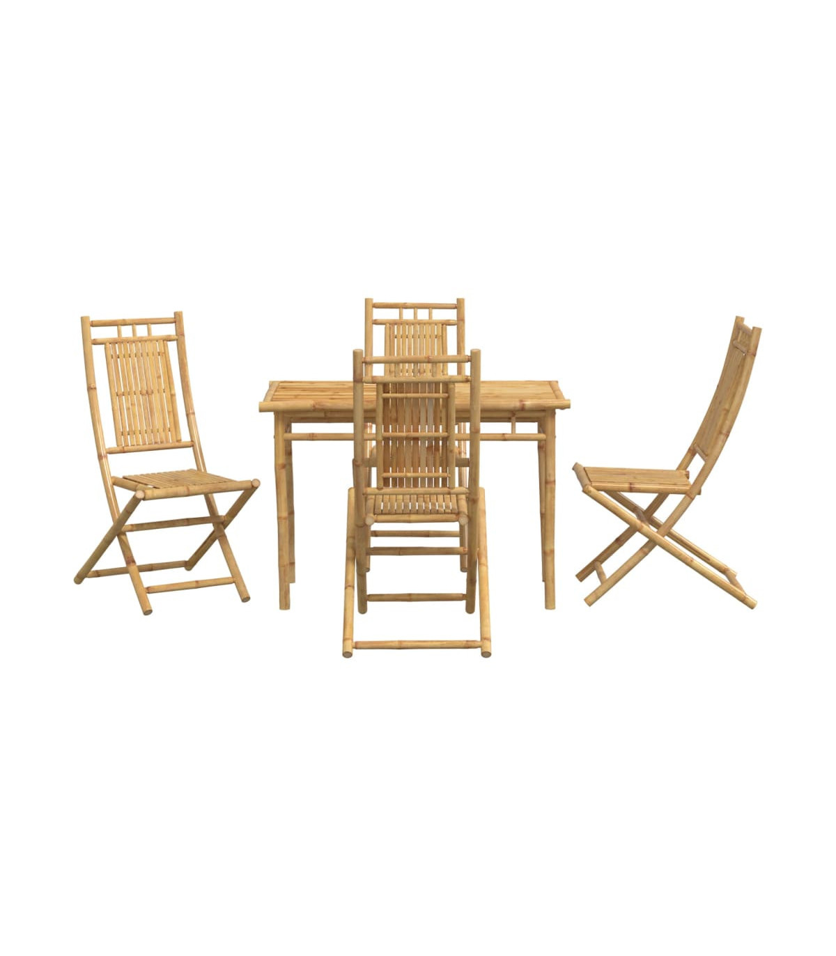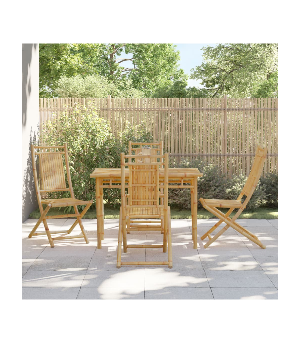 This garden dining set, with an elegant and contemporary design, will be a great choice for dining or relaxing in the garden. Durable and long-lasting: As a natural material, bamboo boasts good breathability and a low odour. These qualities make the garden dining set durable, water-resistant, and long-lasting.Foldable design: The dining chair can be easily folded away when not in use, for easy storage and transportation.Stable top: The stable top of the garden table is ideal for placing your drink or any other necessity you need close at hand.Comfortable seating experience: Featuring a backrest, the outdoor chair gives you the utmost comfort. Good to know:To make sure your outdoor furniture stays beautiful, we recommend protecting it with a waterproof cover.