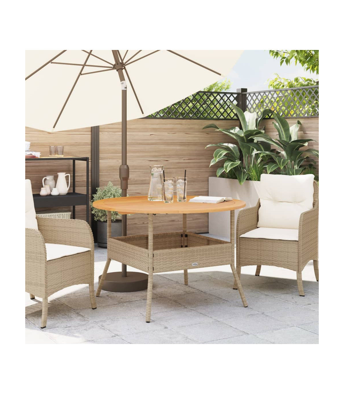 - Material: PE rattan, solid wood acacia with a natural oil finish, powder-coated steel
