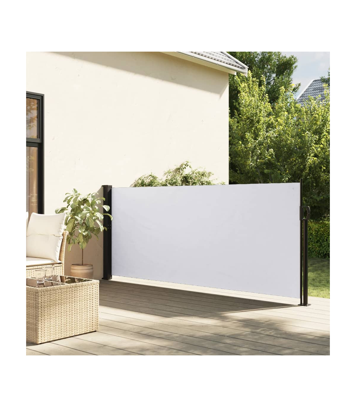 Create an instant and private oasis on your balcony, terrace, or patio using this retractable side awning! Water and UV resistant: This garden privacy screen is made from 100% polyester with a polyurethane (PU) coating, providing good breathability and excellent protection against wind, sun, water, and UV light.Convenient design: Thanks to its retractable design, the garden screen automatically rolls back when you remove the handle from the post.Easy installation: The two posts can be easily fixed to the wall and ground for added stability and safety using the included mounting accessories.Wide applications: This versatile side awning can be used in a variety of settings, both outdoors like backyard, terrace, garden, porch, balcony and indoors such as office, clinic, studio, dressing room, to create extra wall space as required.