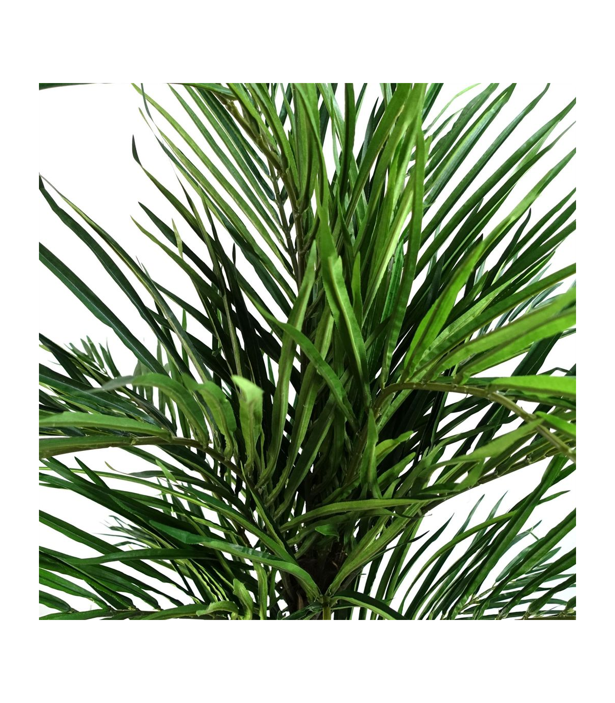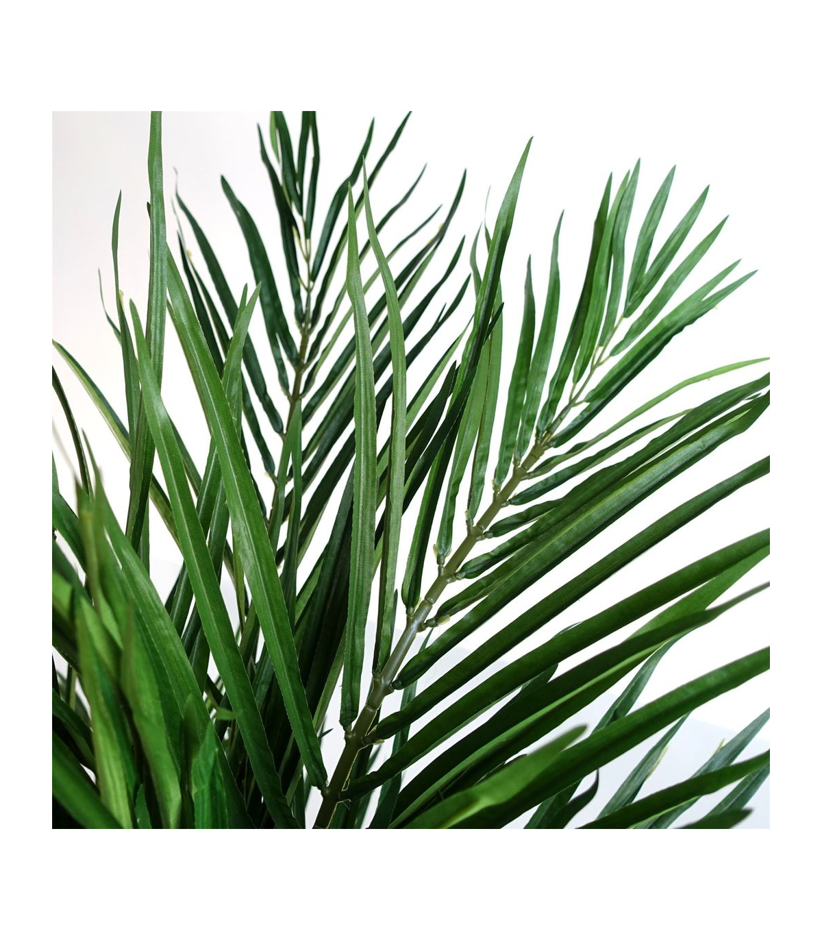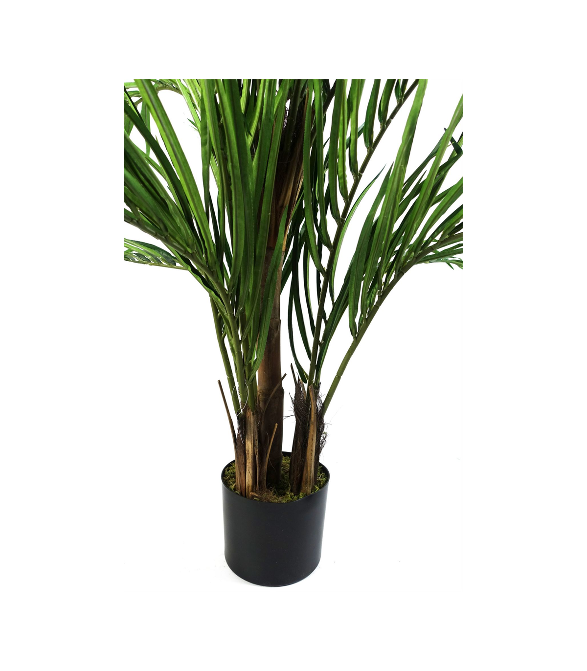 Artificial Areca palm tree boasts silk leaves and natural palm frond additions at the base, exuding an air of opulence. Captured in our photos, this stunning piece measures 130cm x 100cm x 100cm. Its wired branches allow for customisable shaping to perfectly complement your space, while the weighted black plastic pot (measuring 18cm (d) x 14cm (h) approx.) adds a touch of sophistication. For an added touch of elegance, place this exquisite tree inside a decorative planter and cover the top with gravel or soil for a truly luxurious display.