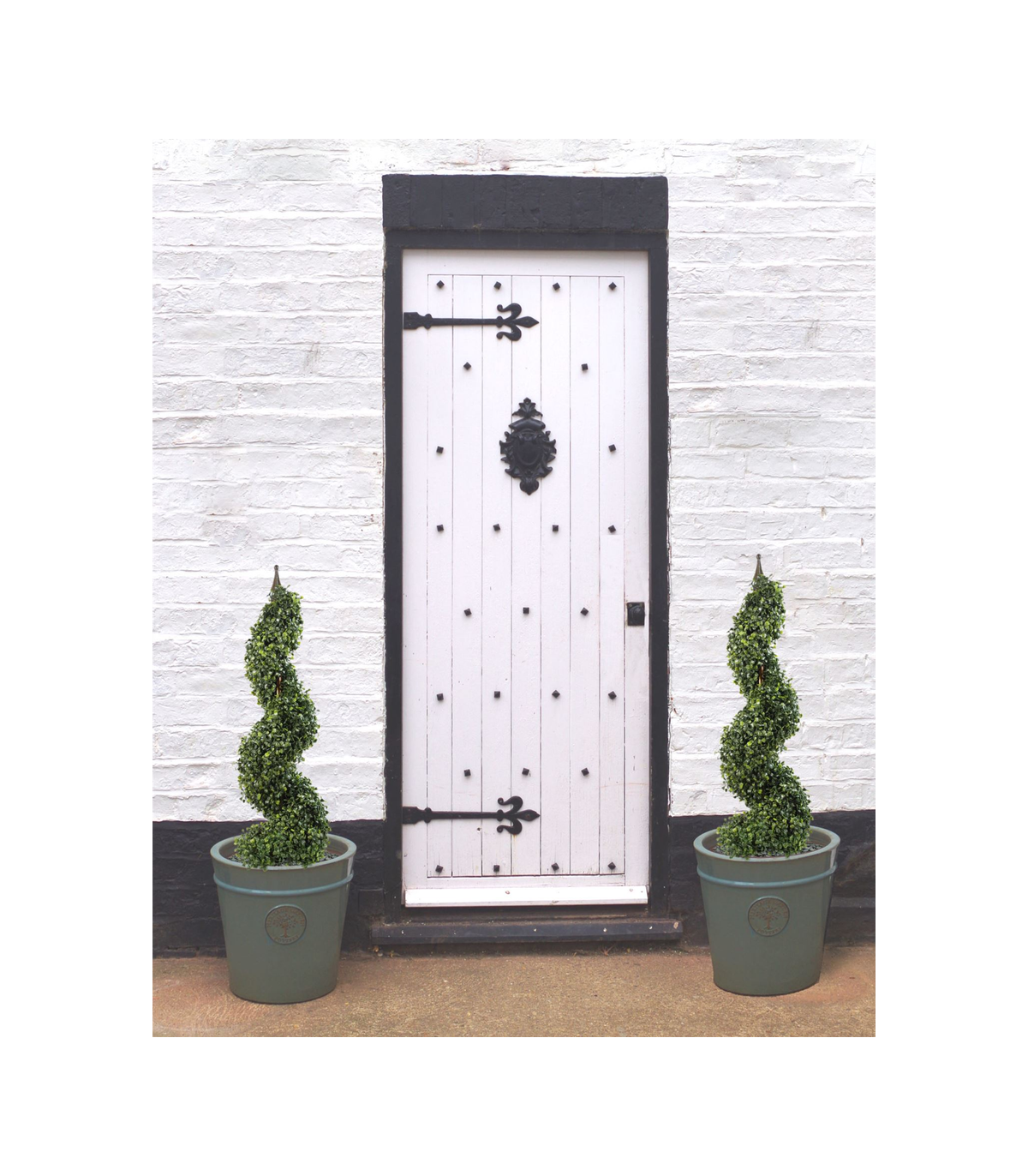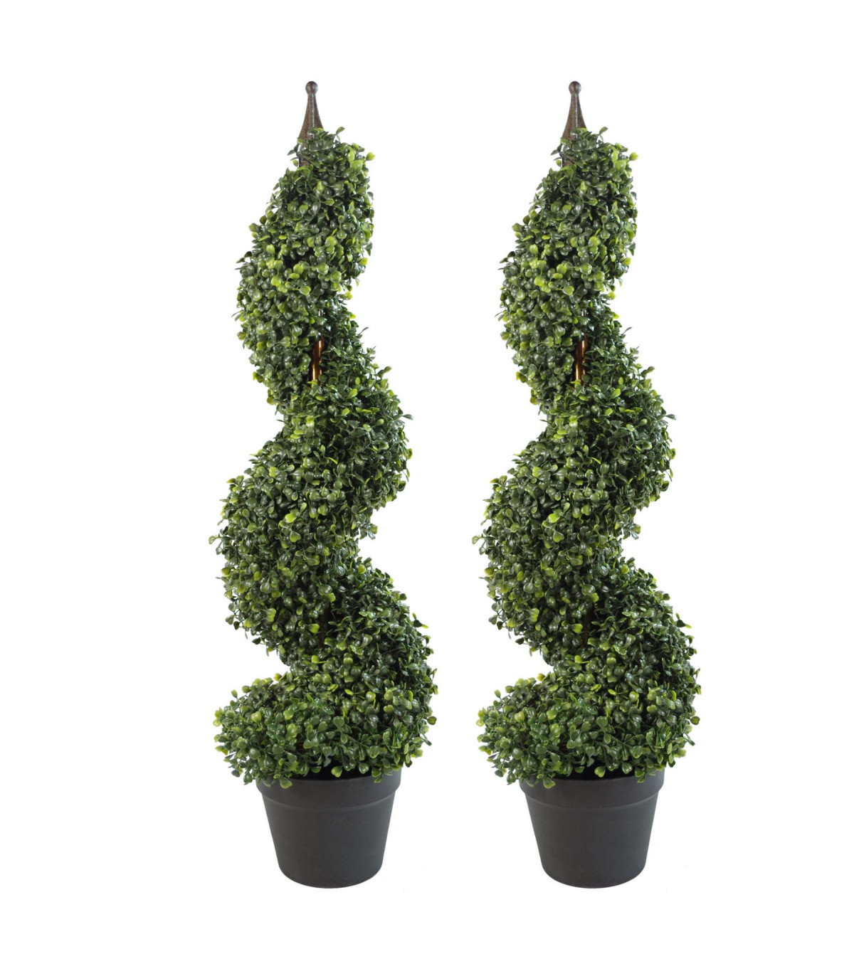 Pair of 90cm (3ft) Tall Artificial Boxwood Tower Trees Topiary Spiral Metal Top