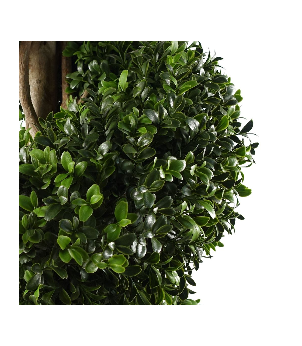 A lifelike spiral buxus tree replica, standing at an impressive 120cm in size. Crafted with UV resistant materials, this stunning tree is perfectly suited for outdoor use. Adorned with fixed branches and presented in a plastic weighted pot, this masterpiece requires no additional arrangement. Elevate its grandeur by placing it inside a larger planter and embellishing it with soil, bark, or gravel for an even more authentic appearance. Experience the luxury of a genuine Botanik UK product.