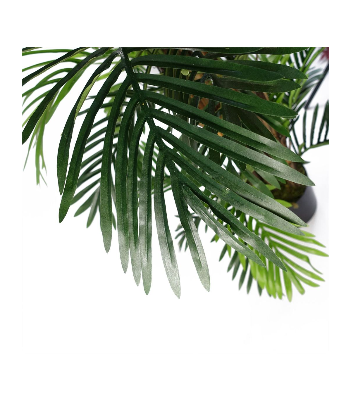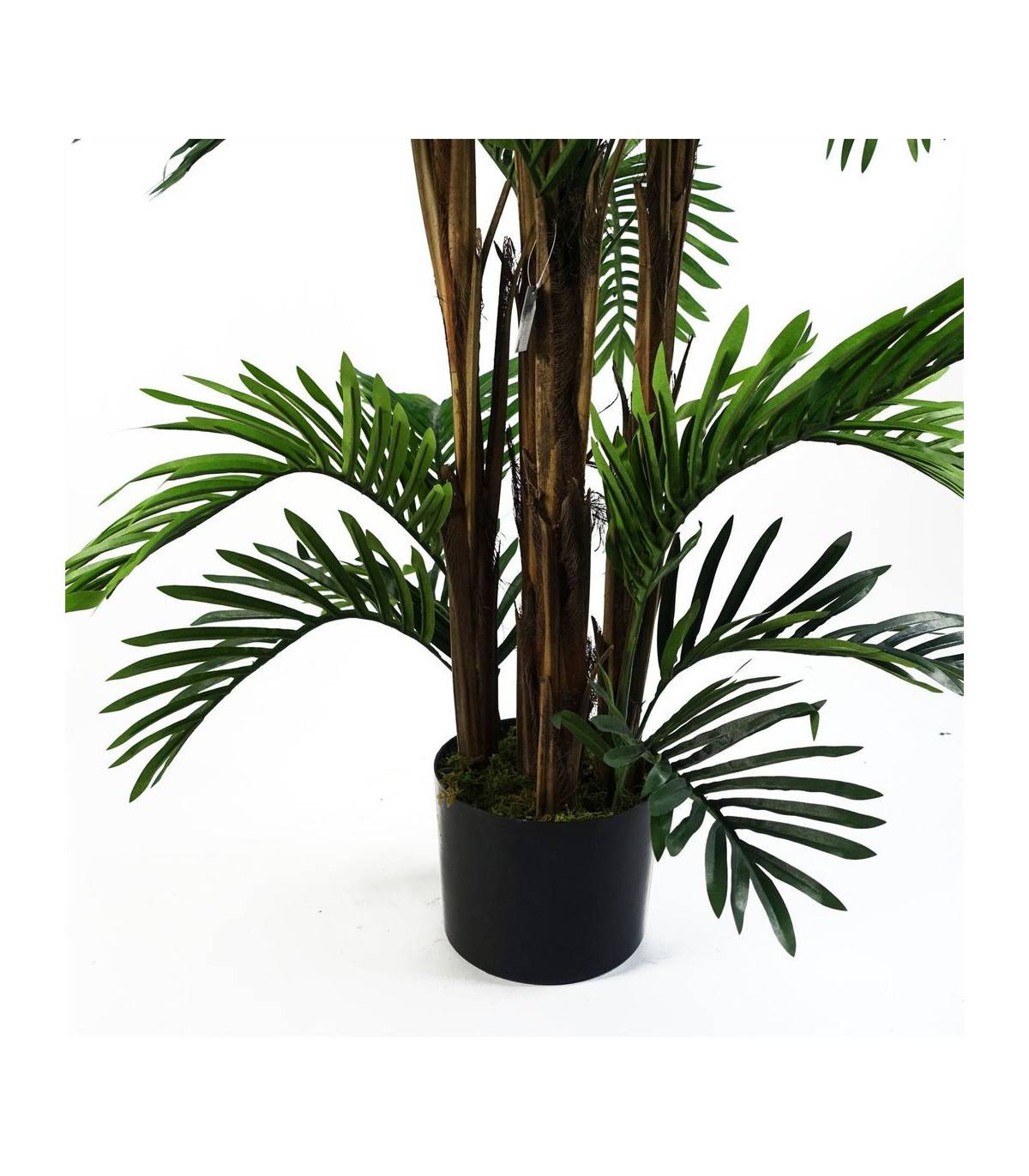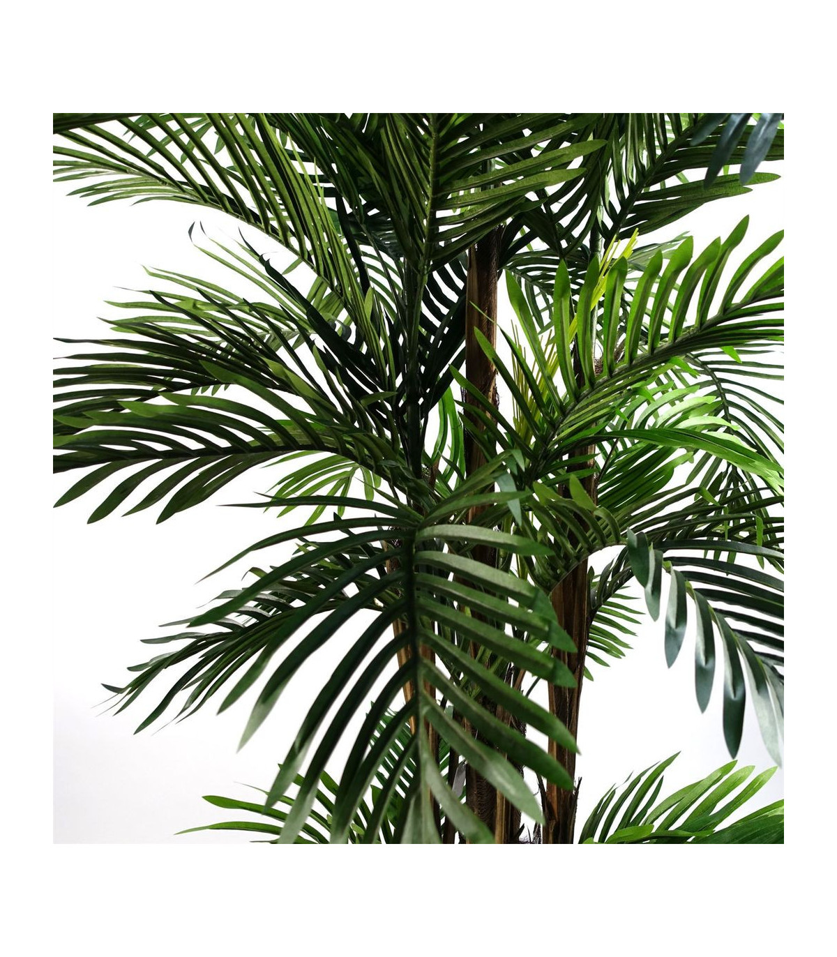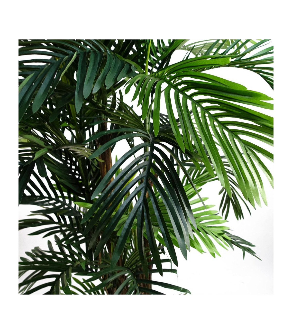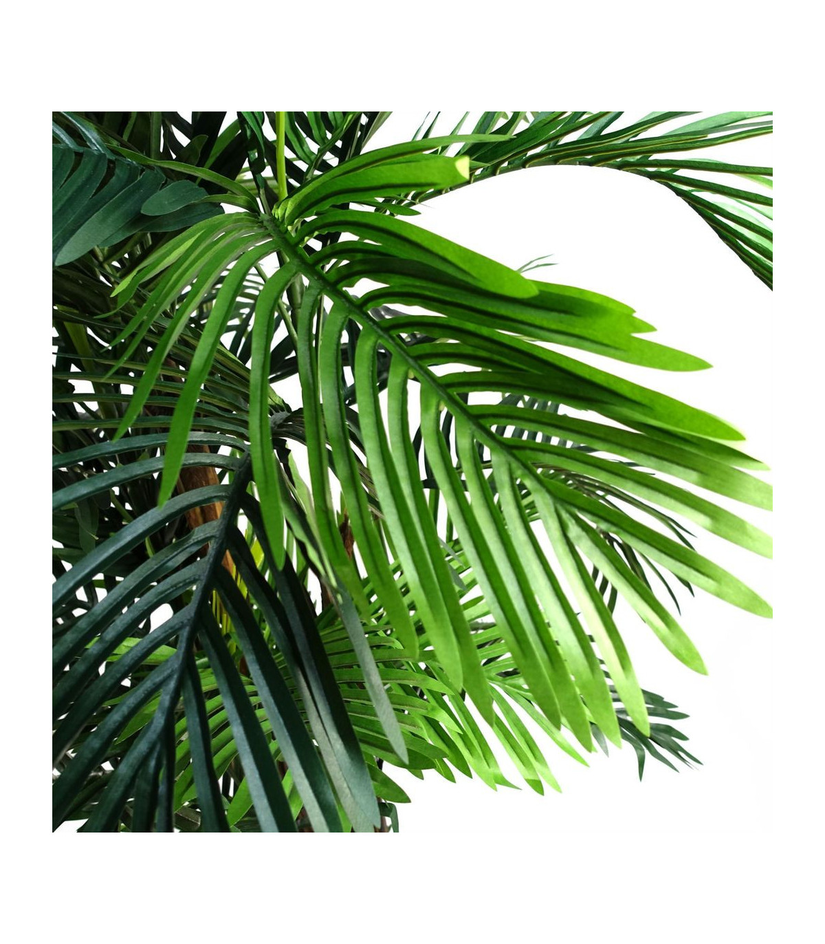 Luxuriously crafted, the lifelike Artificial Areca palm tree boasts silk leaves and natural palm frond additions at the base, creating a truly realistic appearance. Standing at 150cm x 80cm x 80cm, this exquisite tree features wired branches, allowing you to shape the leaves to perfectly suit your space. Delivered potted in a weighted black plastic pot (measuring 18cm (d) x 14cm (h) approx.), this stunning piece will make a statement when placed inside a decorative planter and adorned with gravel or soil on top.