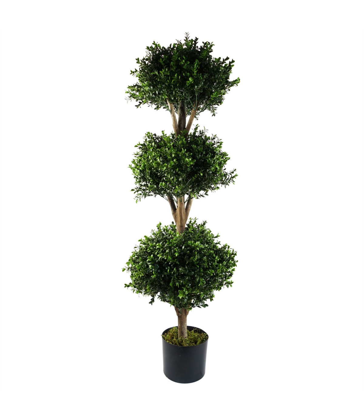 120cm Buxus Triple Ball Artificial Tree UV Resistant Outdoor Topiary