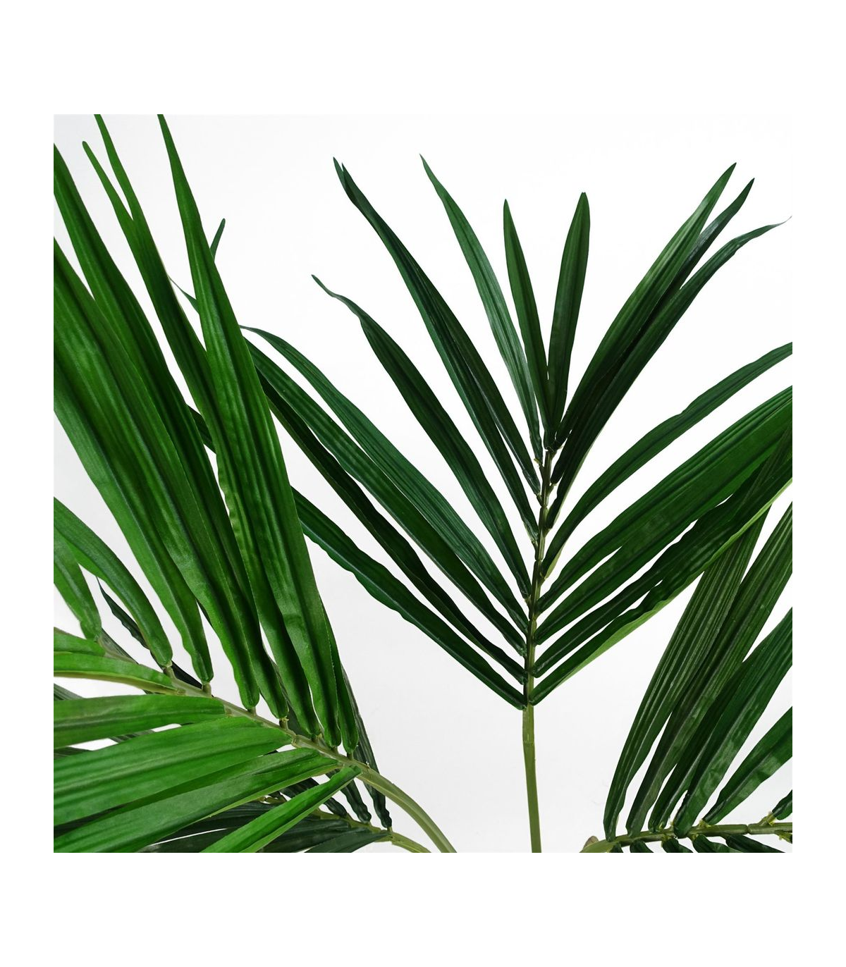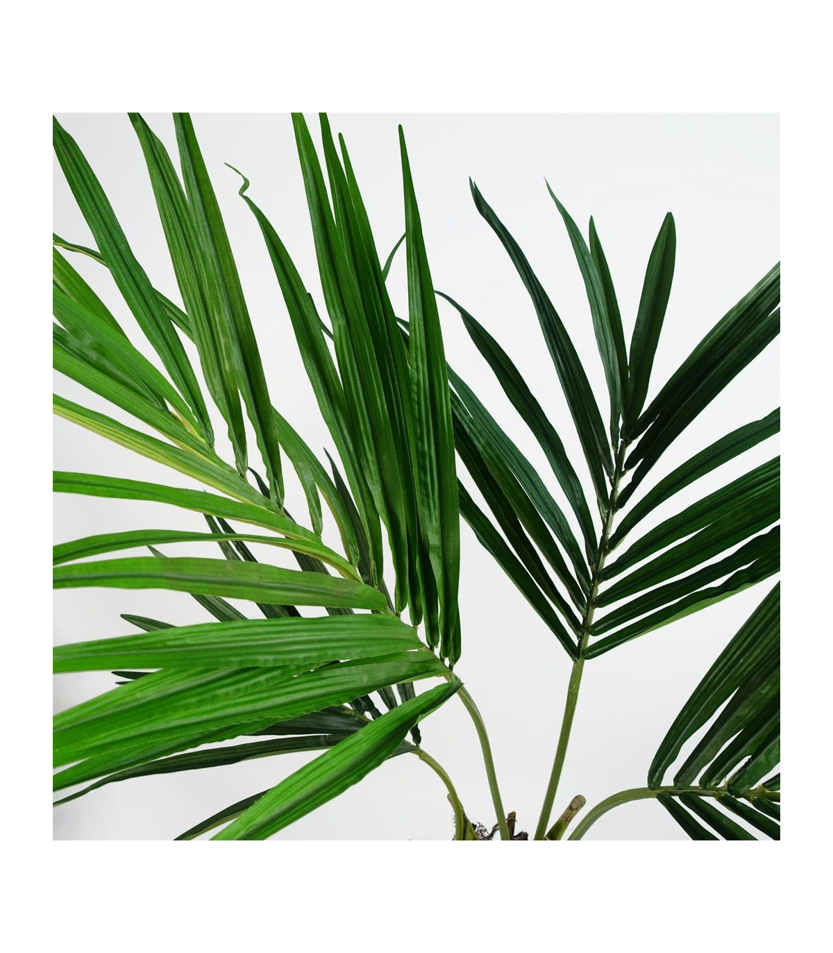 Luxuriously crafted, the lifelike Kentia palm tree boasts silk leaves and natural accents at the base, exuding an air of elegance. Standing at 120cm x 90cm x 90cm, this grand tree commands attention with its wide presence. Its wired branches allow for customisable shaping to suit any space. Delivered in a weighted black plastic pot (measuring 18cm (d) x 14cm (h) approx.), this tree truly shines when placed in a decorative planter and adorned with gravel or soil on top.