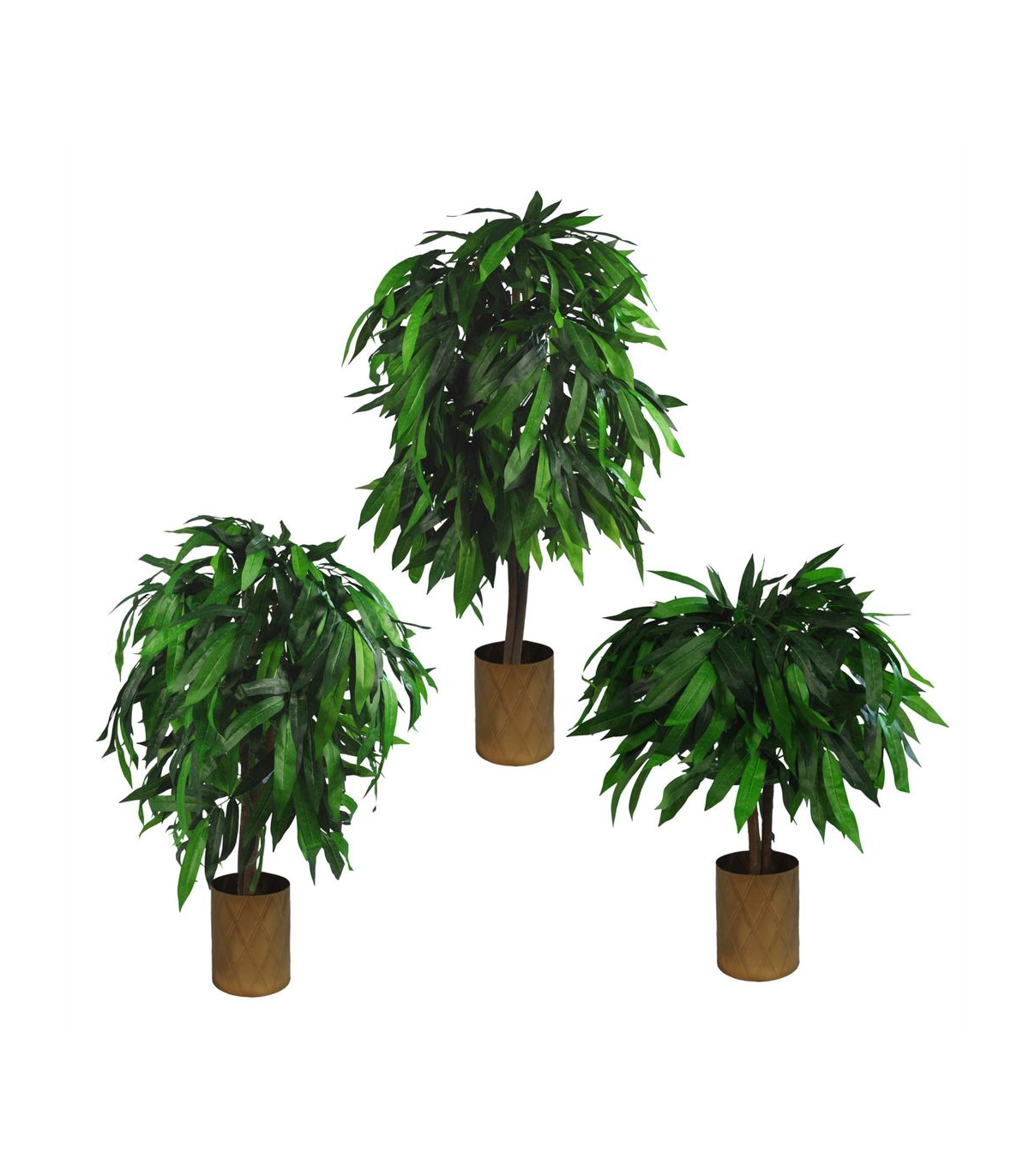 Artificial mango tree, boasting deep green, lustrous leaves that effortlessly elevate any interior design. These everlasting mango trees exude elegance, especially when placed in grand entrance halls and sunrooms. This stunning tree reaches a height of 120cm when styled as depicted in our images. Available in various heights, this artificial plant offers versatility. The wired stems allow for customisable arrangements to suit your space flawlessly. Featuring incredibly lifelike, botanically accurate foliage, it exudes realism. Arriving in a simple plastic pot, this tree is ready for display. For added flair, you can place it inside a larger planter. We received a delightful photo from Jenny, one of our satisfied customers, showcasing her new tree in a living room setting. We believe it looks absolutely marvelous!