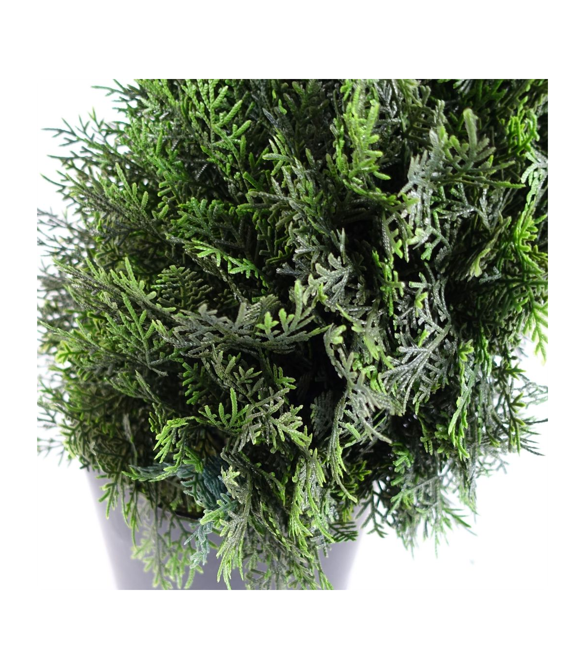 Luxuriously crafted, the Artificial Cedar Spiral Tree exudes elegance with its large size and dense bushy foliage. Standing at 120cm high x 35cm x 35cm, this masterpiece comes with fixed branches that require no further arrangement. The plastic weighted pot, measuring 18cm (d) x 14cm (h) approximately, adds a touch of sophistication. Potted in a plain plastic pot, this tree is ready to be displayed in all its glory. For an even more impressive look, place it inside a larger planter and cover with soil, bark, or gravel to enhance the realistic effect. A genuine Botanik UK product that will elevate any space.
