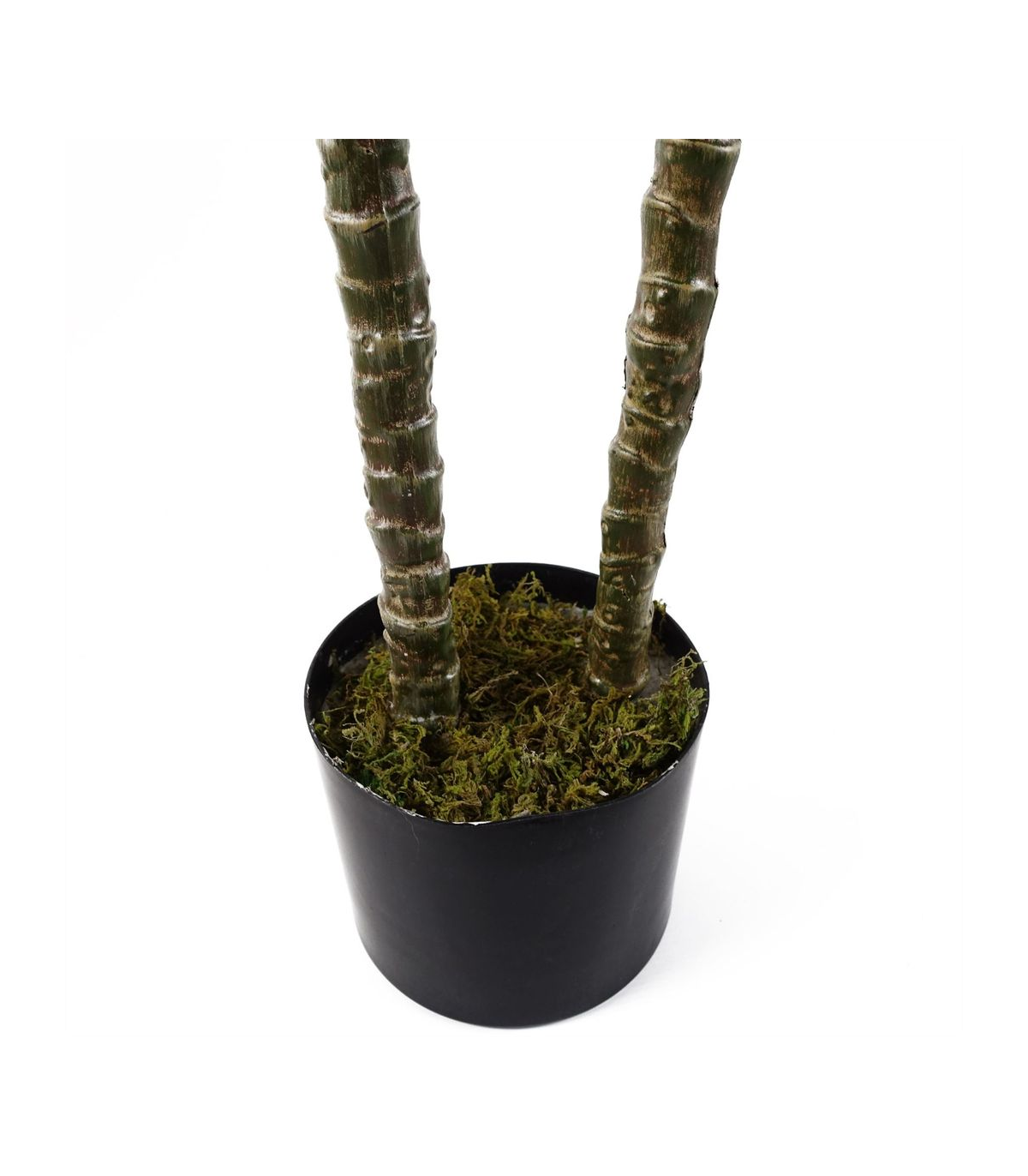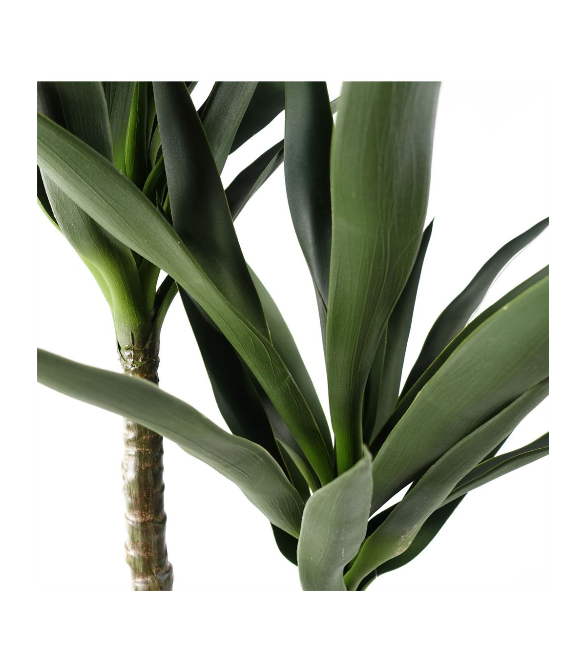 Tropical Yukka Tree. Crafted with realistic leaves and trunk, this UV resistant masterpiece is designed to grace your outdoor space with elegance. Standing at a majestic 120cm high and measuring 70cm x 70cm, this tree comes with fixed branches that require no arrangement. The plastic weighted pot, measuring 18cm in diameter and 14cm in height, adds a touch of sophistication to the overall look. Potted in a plain plastic pot, this tree is ready to be displayed in all its glory. For an added touch of opulence, consider placing it inside a larger planter and covering it with soil, bark, or gravel to enhance its realistic effect. Elevate your outdoor decor with this stunning creation from Botanik UK.