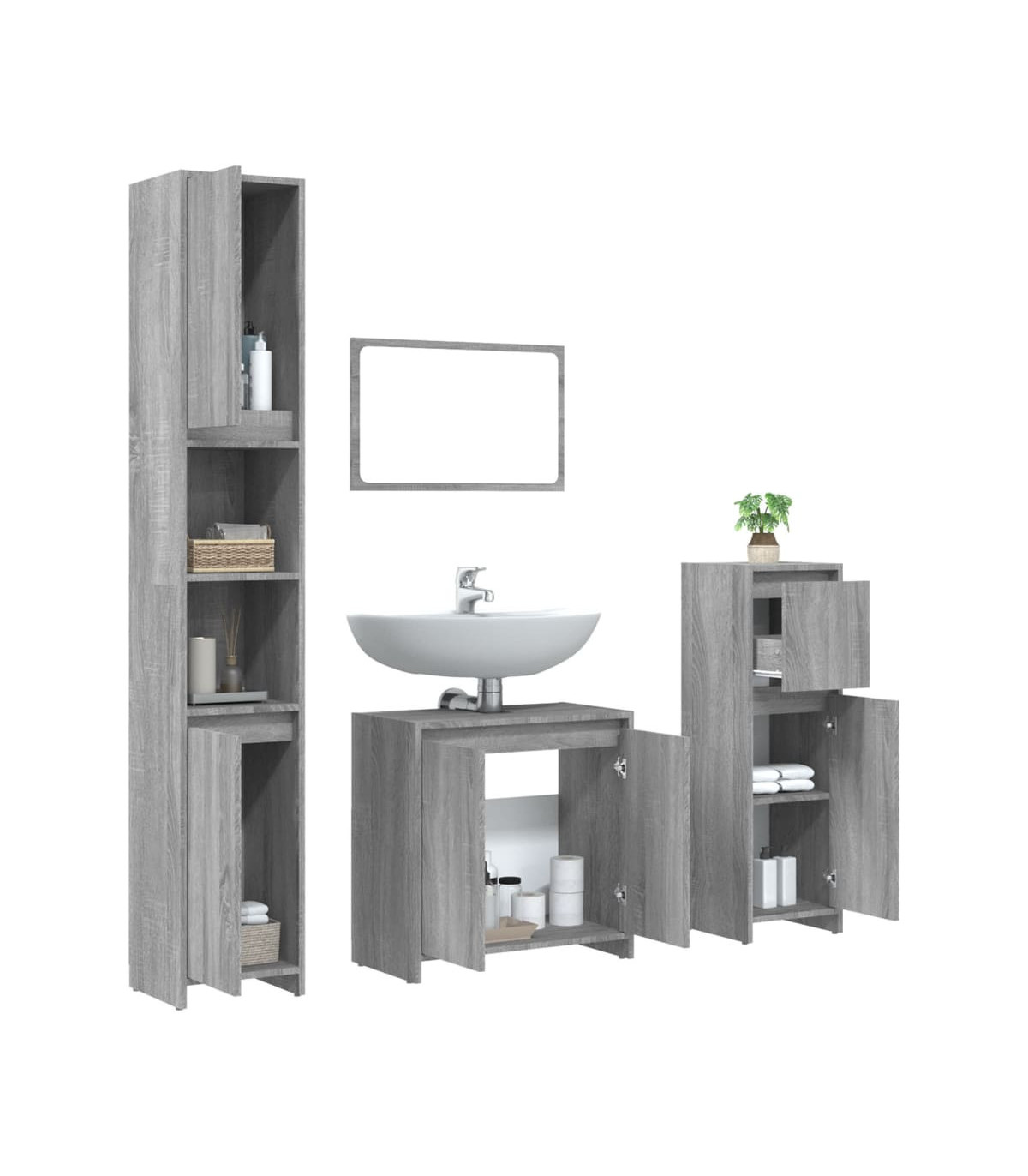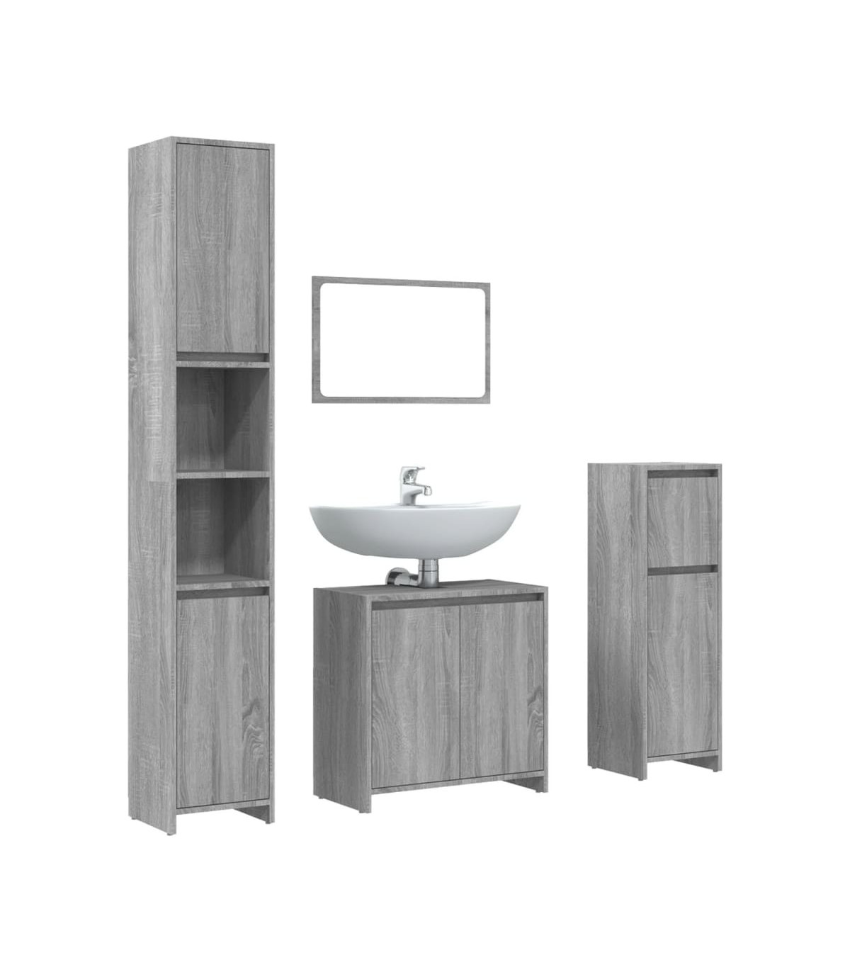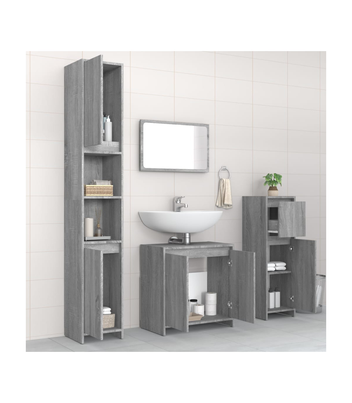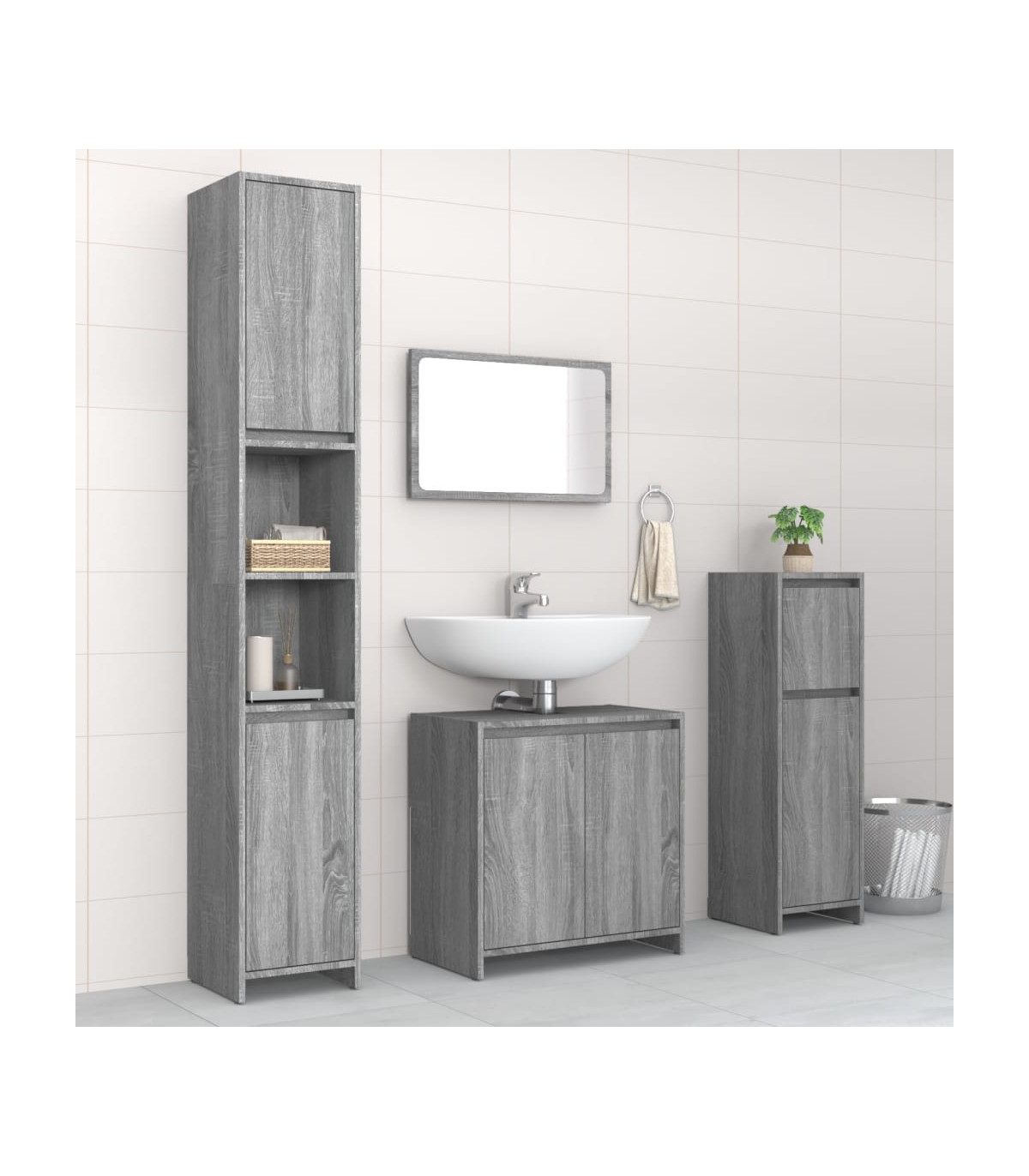 This attractive bathroom cabinet set, with ample storage space, features a stylish yet practical design. Easy-to-clean material: The engineered wood is of exceptional quality with a smooth surface and features strength, stability and resistance to moisture.Ample storage space: The storage space makes this bathroom furniture set easy to keep things organised.Stylish design: The clean lines and sleek design blend into your bathroom perfectly. Warning:In order to prevent overturning, this product must be used with the wall attachment device provided. Note:Screw(s) and plug(s) for inside the wall are not included. Seek and use screw(s) and plug(s) suitable for your walls. If you are uncertain, seek professional advice. Read and follow each step of the instruction carefully.Each product comes with an assembly manual in the box for easy assembly.